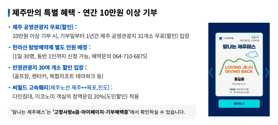 기부혜택으로 탐나는 제주패스!를 줍니다.