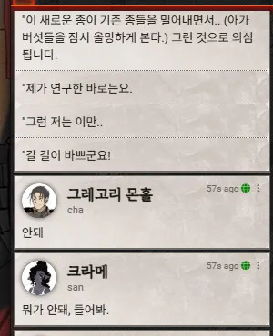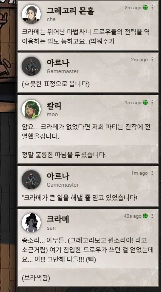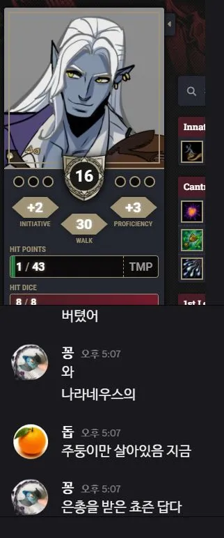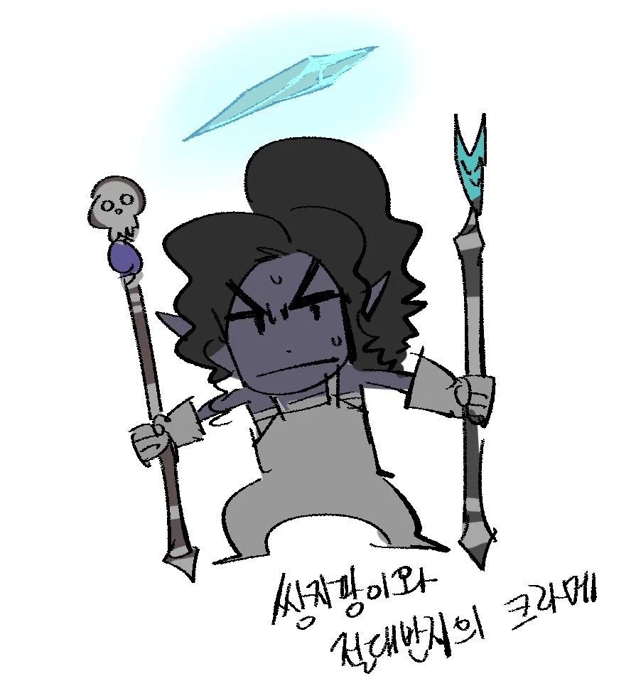 이름: 자리스토 종족: 드로우 배경: 연예인 클래스: 바드(전승학파) 성향: 혼돈 중립 힘 8 (-1) 민첩 15 (+2) 건강 13 (+1) 지능 12 (+1) 지혜 10 (+0) 매력 17 (+3) 과거 자리스토는 할로스의 오페라 홀에서 귀족들을 위해 공연하던 비올 연주자였습니다. 빈민가에서 곤궁하게 지내던 시절도 있었지만 음악적 재능 덕분에 리솔 가문 귀족의 눈에 들어 후원을 받기 시작한 이후부터는 남자 드로우 기준 아쉬울 것 없는 생활을 누릴 수 있었습니다. 하지만 할로스의 귀족들이 모이는 장소에는 으레 음모와 첩보 활동이 포함되는 법. 비올 연주자였을 뿐인 자리스토 또한 자신의 의지와 상관없이 후원자의 첩보원이 되어 밀서를 전달하는 등의 지령을 수행하게 되었습니다. 그렇게 자신의 신변이 점점 위험해짐을 느끼던 어느 날 자리스토는 암살자의 습격을 받게 되고, 절체절명의 순간에 음악 자체가 자신의 무기임을 발견하여 살아남는데 성공합니다. 귀족의 꼭두각시 처지에서 벗어나 오래전부터 꿈꾸던 자유로운 삶을 추구하기 위해, 자리스토는 도시를 탈출하고 지상 여행을 시작하게 됩니다. 성격 특성 신사적인 태도, 자기애, 낙천적, 혼돈 추구. 신사적인 태도: 귀족들을 상대하던 탓에 품위 있는 태도가 몸에 붙음. 별로 신사적이지 않은 상황에도 이러한 태도를 꾸며냄. 자기애: 자신의 연주와 외모에 자부심을 가지고 있음. 이를 어필하는 데도 진심. 낙천적: 모든 상황은 종래에 나아질 수 있다고 믿음. 상황을 쉽게 받아들이고 긍정적인 면을 찾아냄. '어떤 상황에서도'. (ex: 우리의 물자들이 물에 떠내려갔지만 어딘가의 물고기들은 주린 배를 채웠겠군요. 그렇지요?) 혼돈 추구: 물질적, 정신적 가치 위에 '본인 흥미' 있음. 질서 무너뜨리기, 장난 치기, 억압자에 대항하기 등 혼란을 일으키는 일에 흥미를 느끼고 이러한 일에는 아무리 위험하더라도 뛰어듬. 행동이 제한되는 상황은 선호하지 않음. 결점 대책 없음, 책임 회피 성향. 대책 없음: 상황이 흘러가는 대로 놔두는 성향 때문에 계획을 세우지 않고 일을 저지르고 봄. 책임 회피 성향: 자유로운 성향이라는 것은 곧 회피 성향이 강하다는 뜻. 진지하지 못하고 확실한 책임을 지는 것에 약함. (ex: 책임에 대한 확답이 필요한 순간에는 말을 흐리다가 능청스럽게 주제를 돌리거나 다른 사람에게 맡김.) 특징 드로우 남자: 여자 드로우나 나라네우스의 사제는 깍듯이 대우하지만 자신의 안위나 신념보다 중요하게 생각하지는 않음. 바드: 음악에 관해선 우열을 따지지 않고 모든 장르를 동등하게 좋아하고 존중함. 나라네우스와 매트론, 거미를 주제로 하는 곡이 주 특기. 목표 자신의 신변에 대한 완전한 자유. 남을 돕는 이유 자신의 자유를 보장해줄 수 있는 물질적 보상 또는 개인적인 흥미 때문에. ▲초기 디자인 ▲커미션 by 토마토옙스키님 ▲by 헤덕님