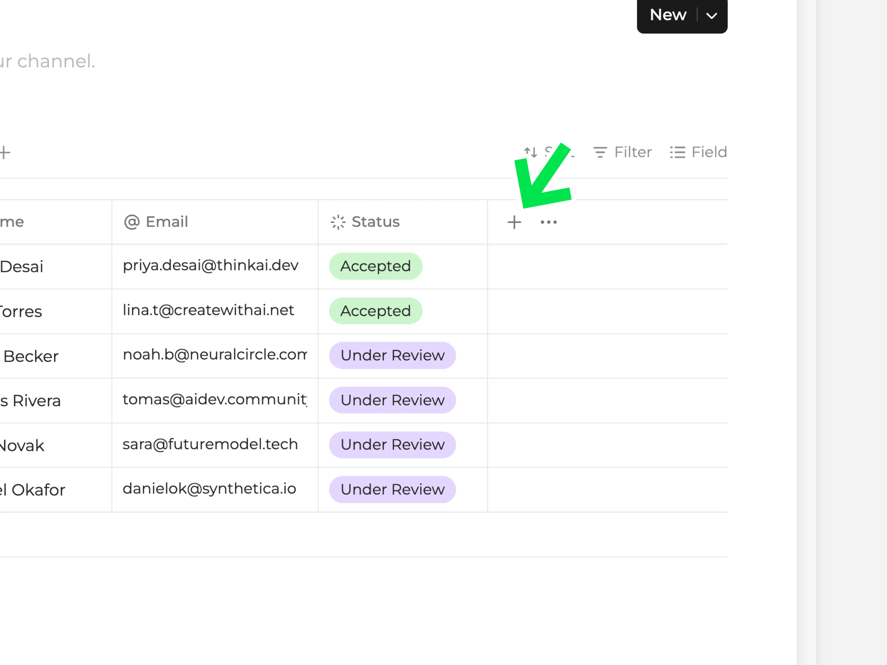 만든지 오래 된 설문 채널에는 결과 테이블이 자동으로 생기지 않아요. 추가하려면 설문 탭 오른쪽에