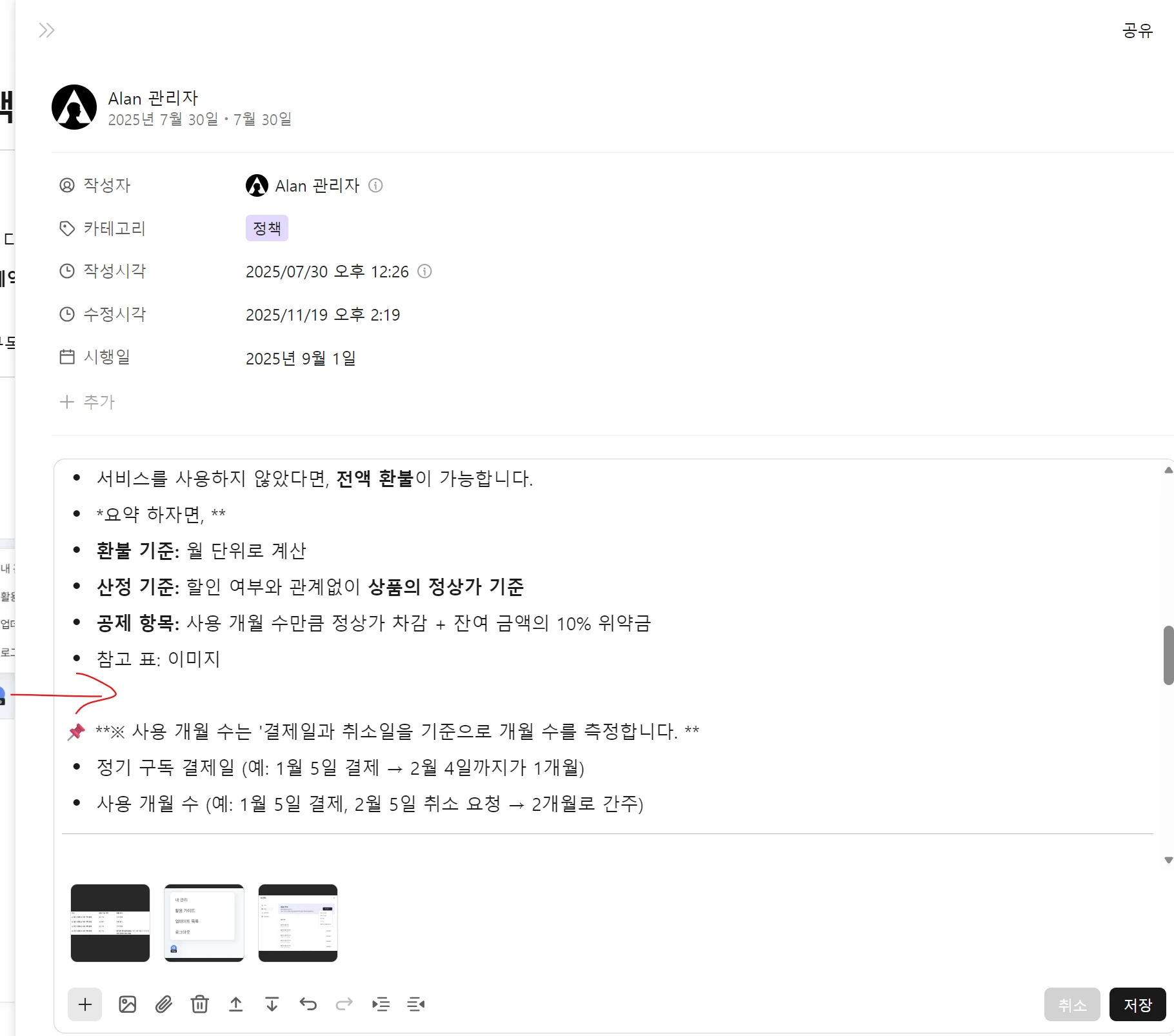 추가로 노션의 버전기록 기능처럼, 제가 수정한 내역, 실수로 삭제한 내역등을 확인하면서 복구할 수 있는 기능은 없는지 문의드립니다.