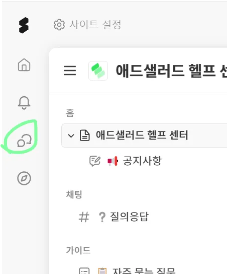 따로 채팅 상담 운영 중인 게 있는데 고객분들이 이쪽으로 문의를 주시는 경우가 있어 대응이 어렵습니다. 아래 이미지에 체크한 부분입니다.