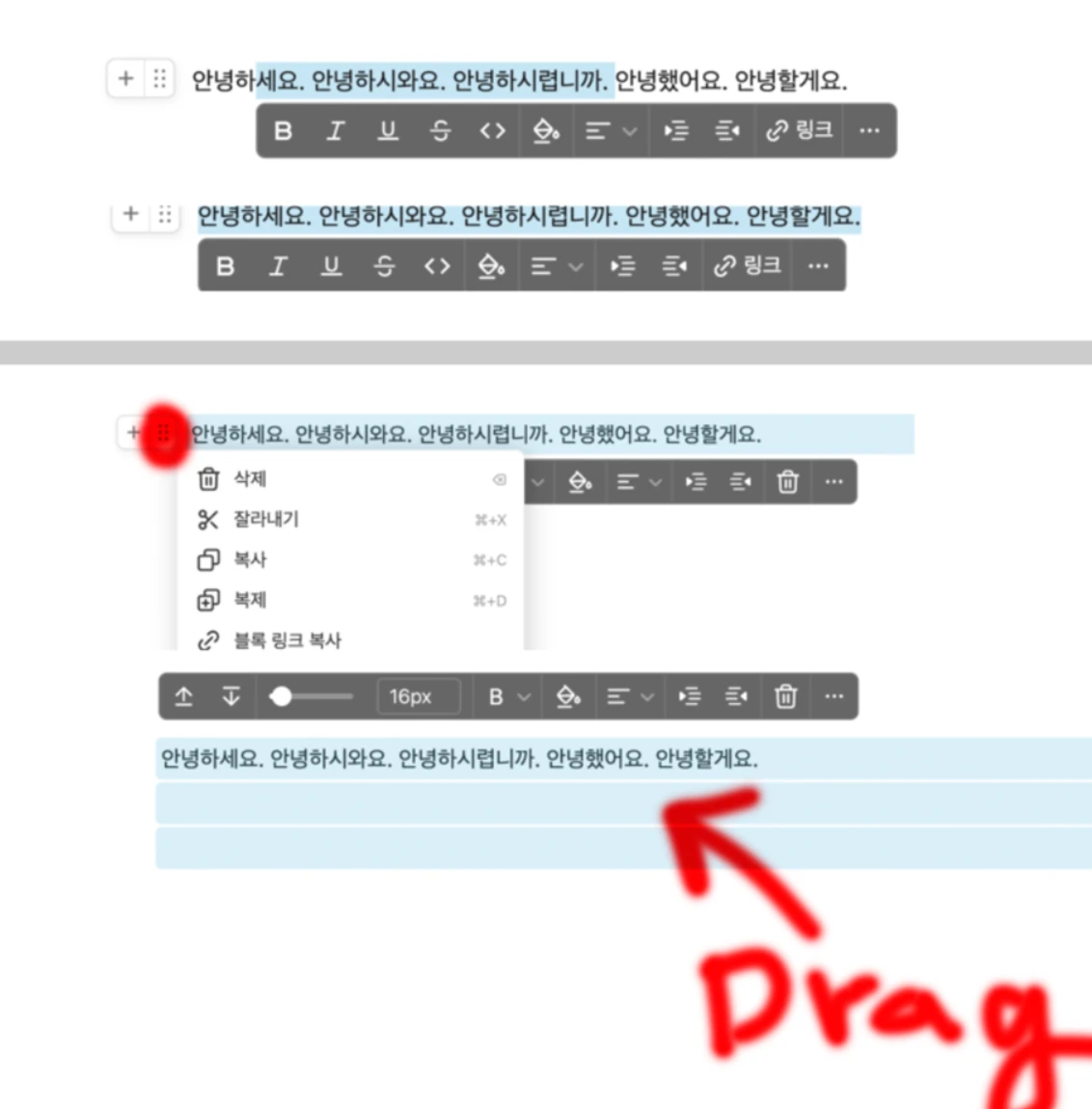 텍스트 드래그