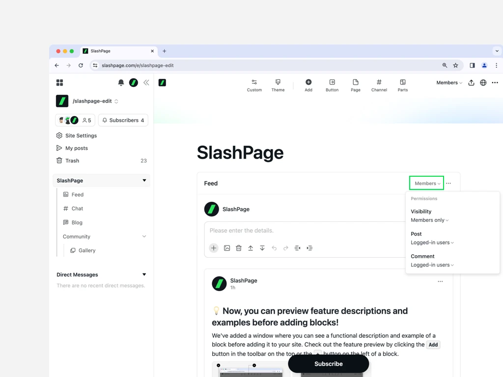 구독 허용 범위 확대: 비공개 사이트도 구독 가능하도록 수정