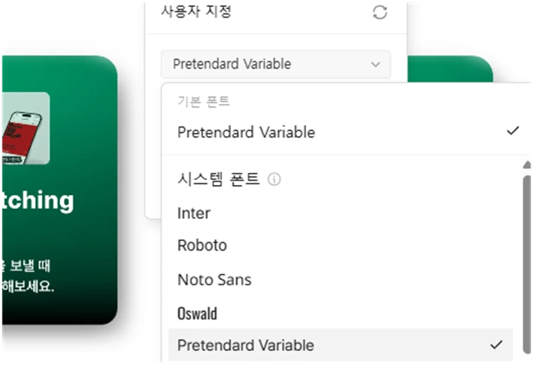 저는 기본값을 프리텐다드 폰트로 설정을 해놓고 홈페이지를 만들고 있습니다.