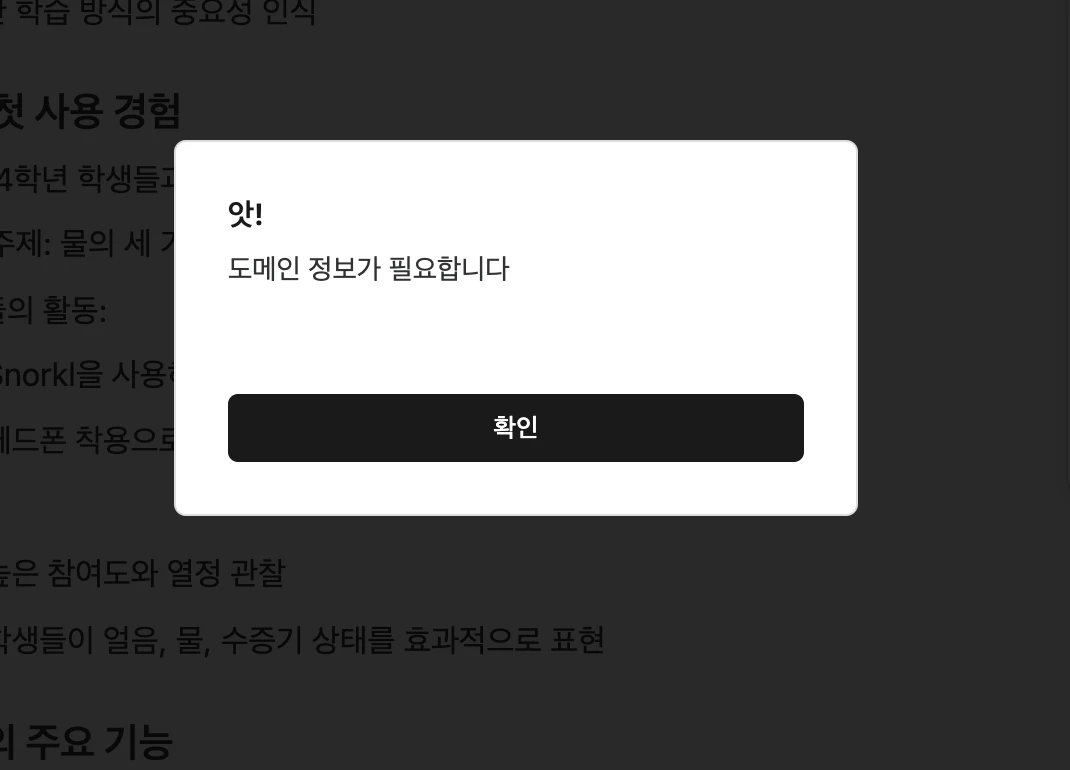4.1 서브 페이지 "링크" 생성 불가. 홈페이지 "생성자"가 아닌 "공유됨" 상태의 권한자에게 나타난 오류입니다.