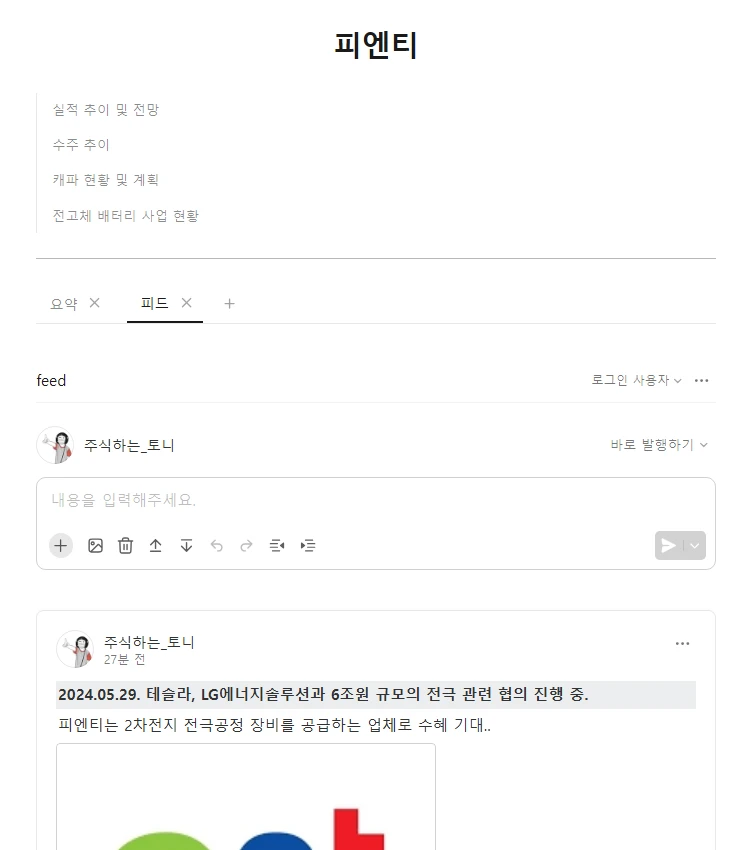 이미지를 보시면 요약 탭의 목차가 표시되고 있는데, 피드 탭에서 목차를 클릭하면 아무런 작동도 하지 않아요.