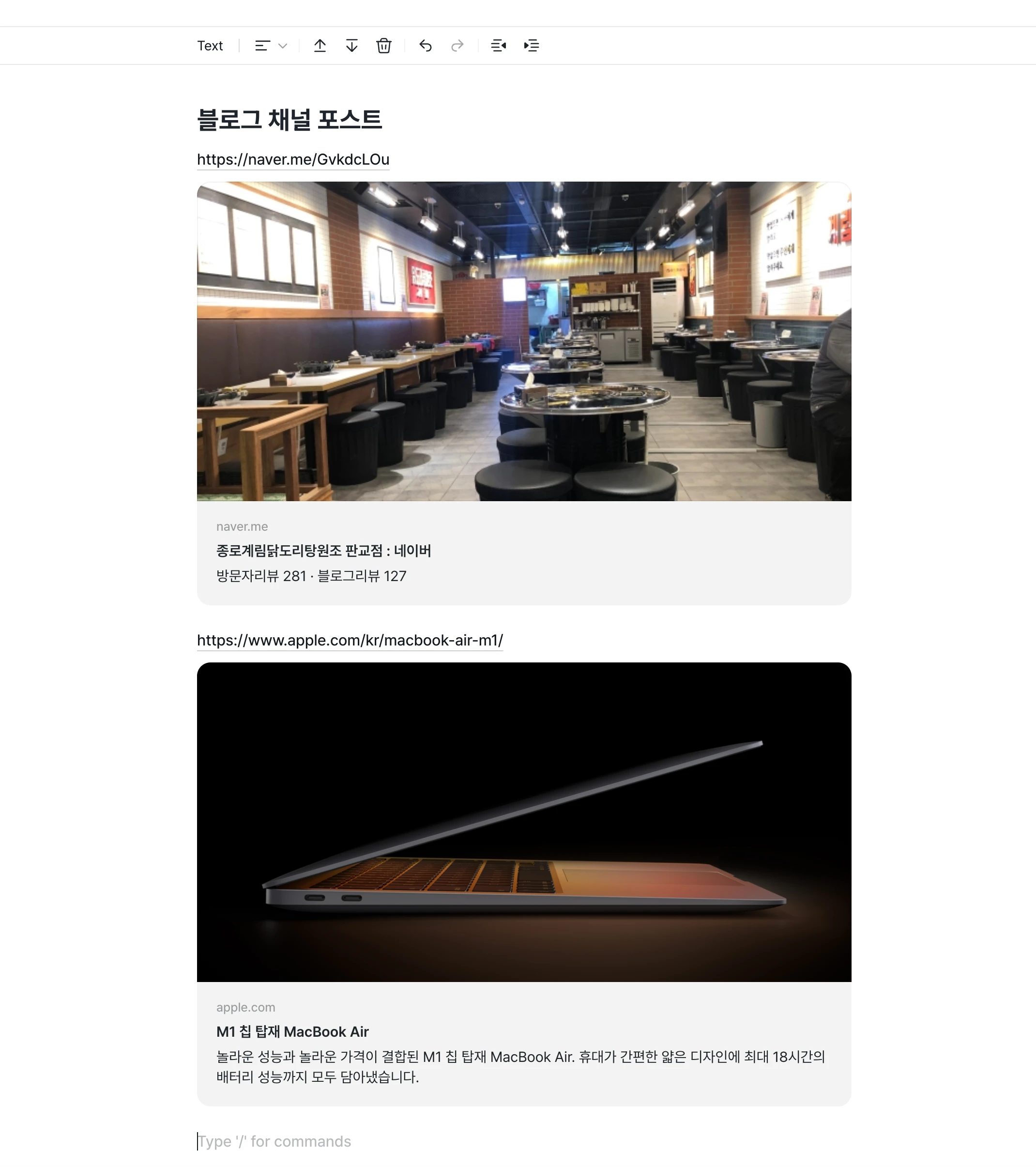 안녕하세요! 블로그 글을 쓸때에 링크를 넣으면, 자동으로 썸네일이 뜨는 기능이 있을까요?