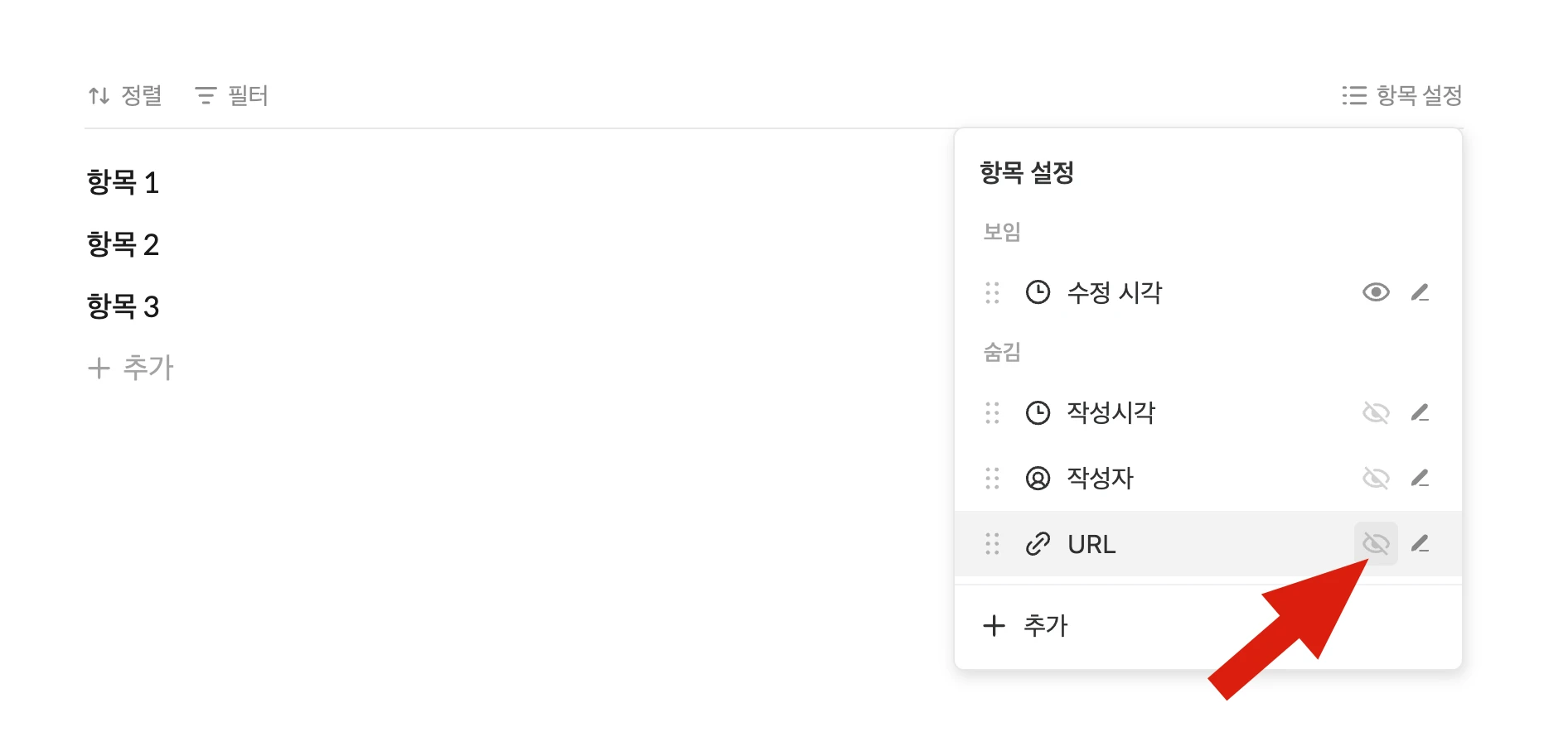 URL이 목록에서는 보이지 않고, 해당 포스트를 들어가면 확인할 수 있게 됩니다.