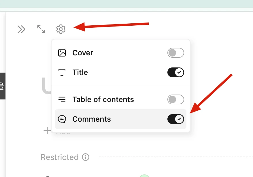 왼쪽 위에 뜨는 설정 아이콘 클릭 후 댓글 토글 선택(첨부 이미지 참조)