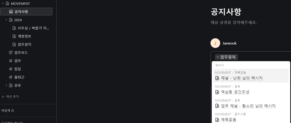 @ 기능에 오류가 많은거 같습니다. '업무일지'라는 페이지를 만들었는데 @업무일지로 검색하면 뜨질 않네요. 그밖에도 이름 언급하고 글쓰다가보면 다시 사라지는등 안정성이 떨어지는거 같습니다 (PC)