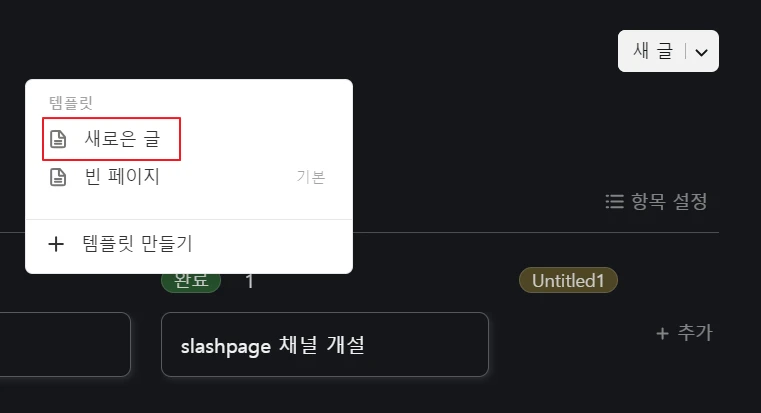 슬래시페이지 채널에서는 기본으로 제공하고 있는 템플릿이 없고, 아래 이미지처럼 직접 만들었을 때만 추가가 됩니다.