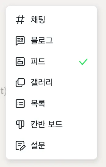 채팅 채널의 경우에는 정렬을 변경할 수 없습니다.