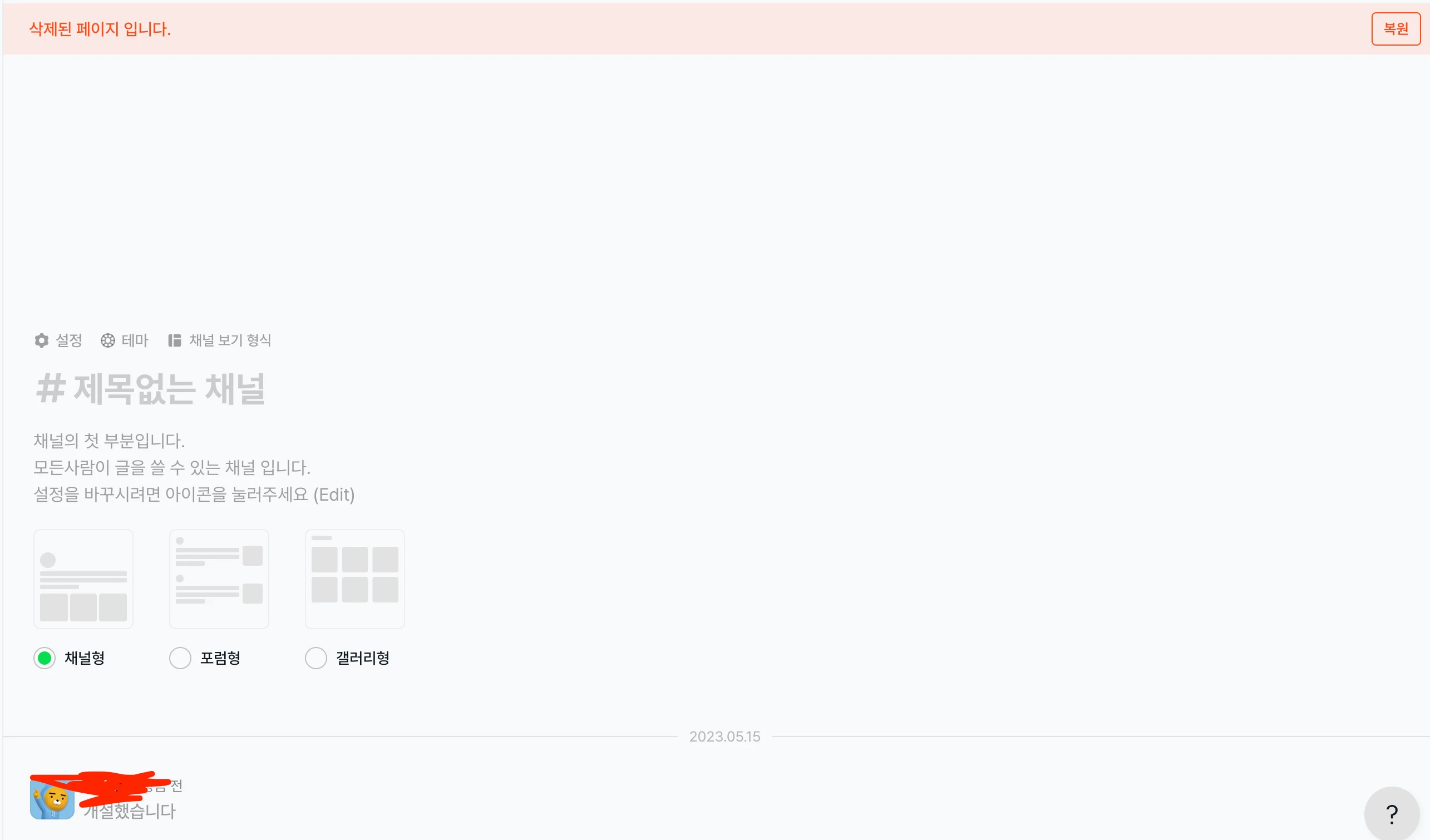 페이지 댓글 설정 버튼이 보이지 않음. 갤러리 채널