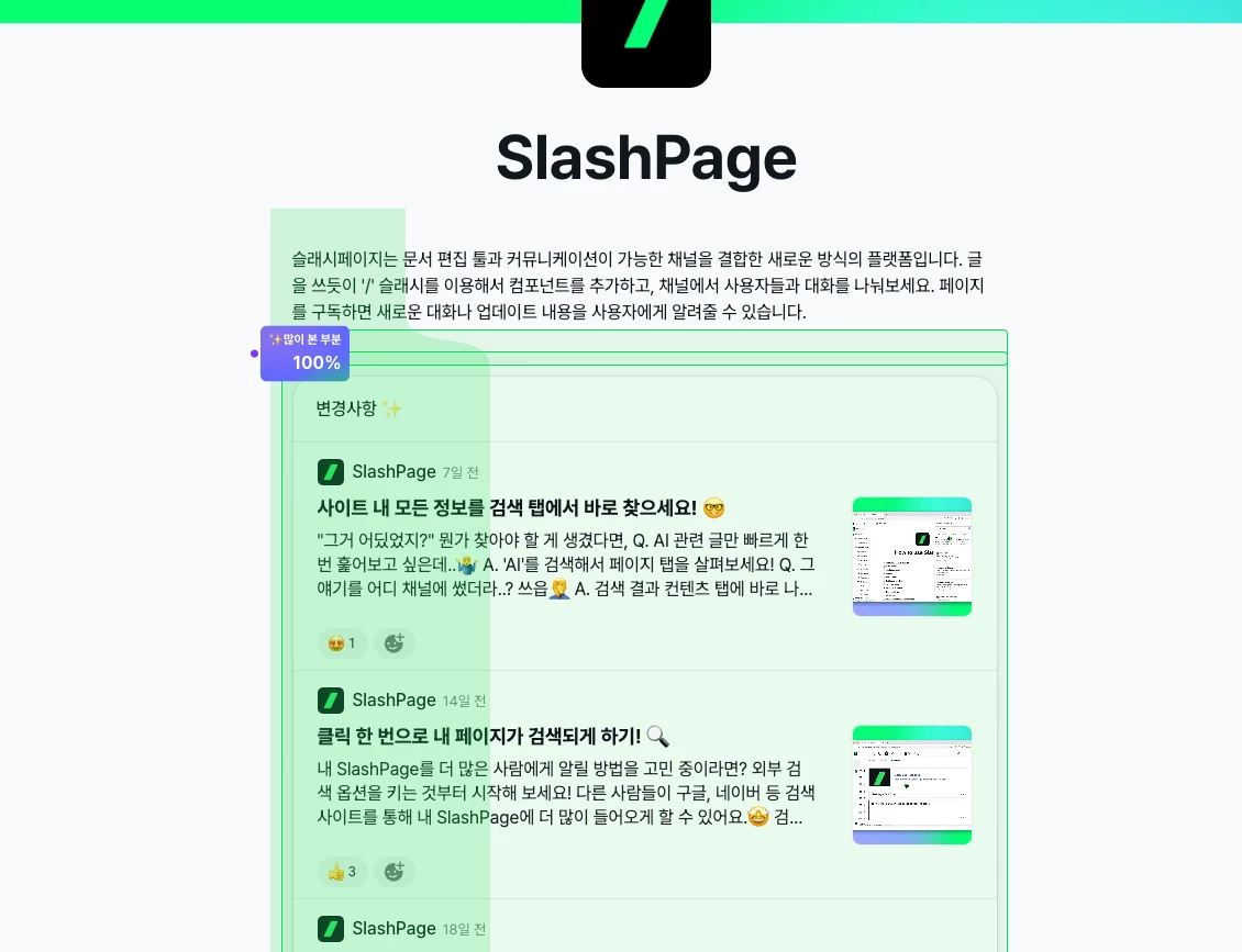 최근 슬래시페이지를 접하고, 저희 서비스에서도 유용하게 활용하고 있습니다.