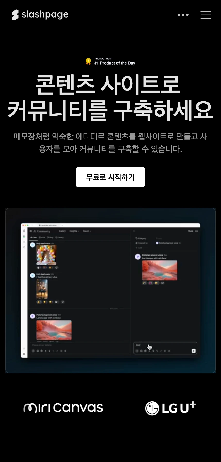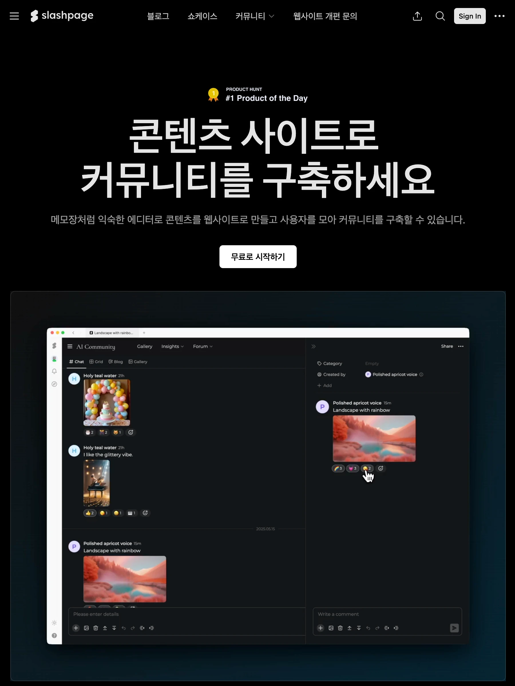 다른 사람들이 만든 슬래시페이지 웹사이트를 카테고리별로 확인해보세요!