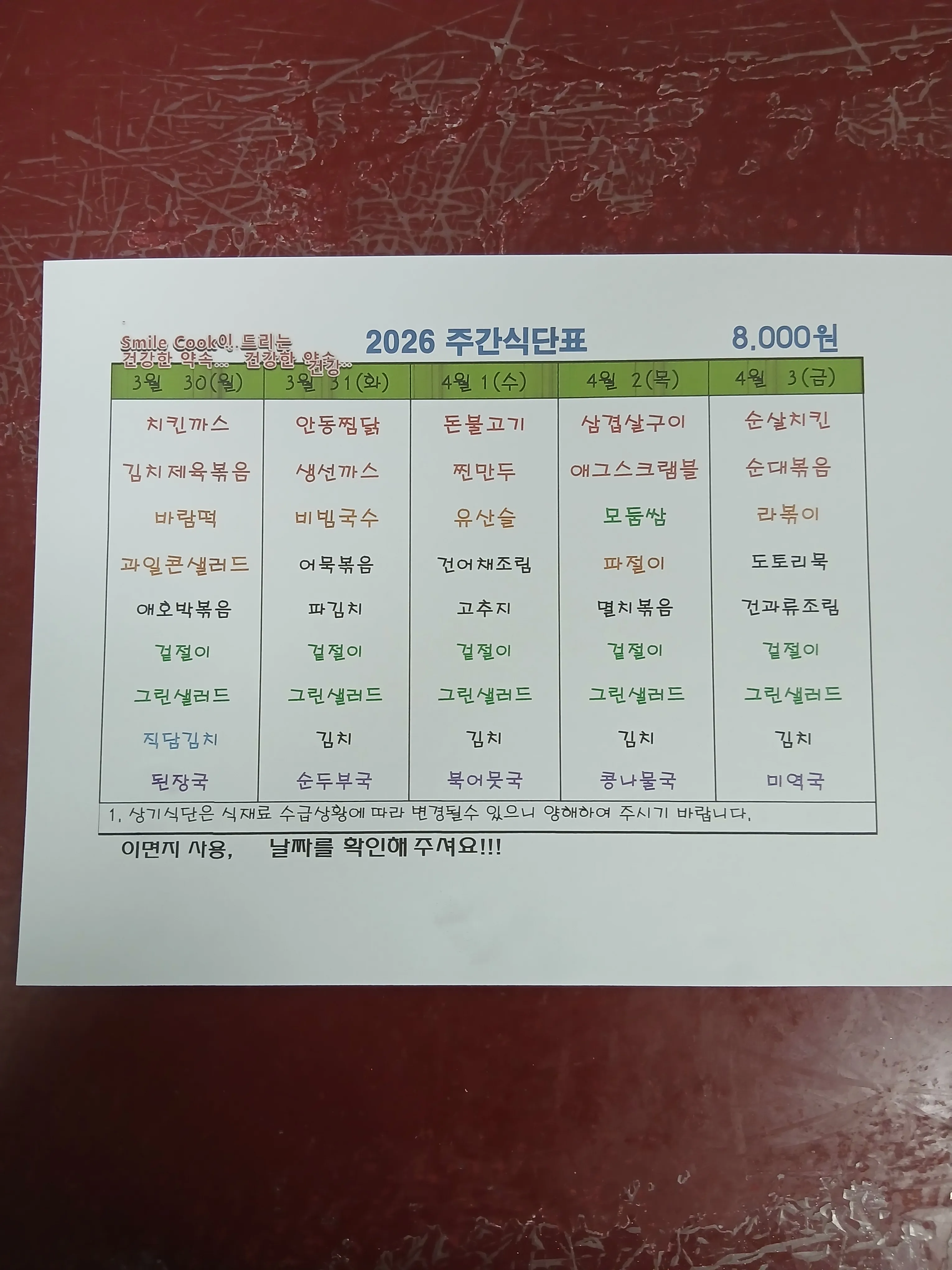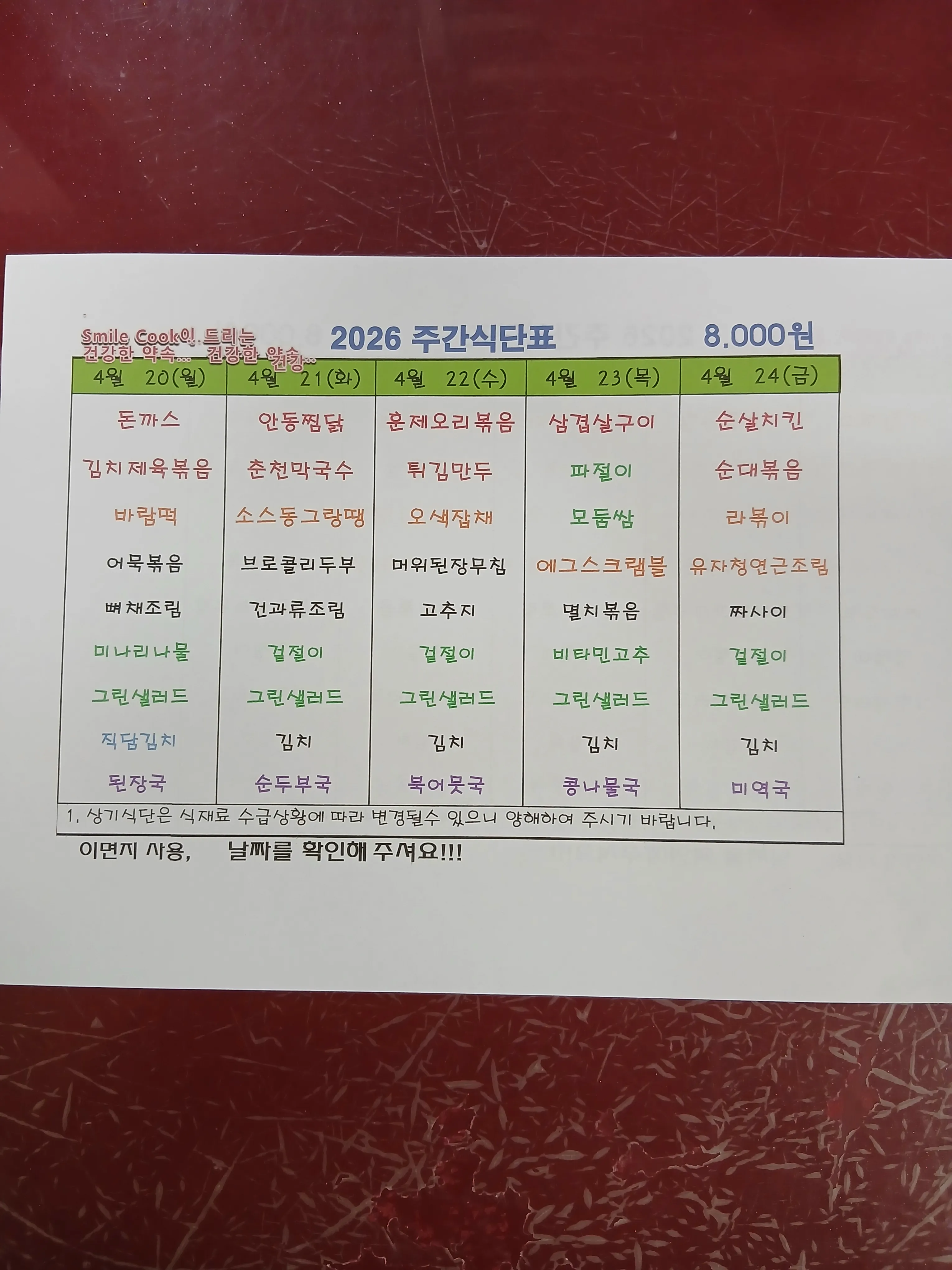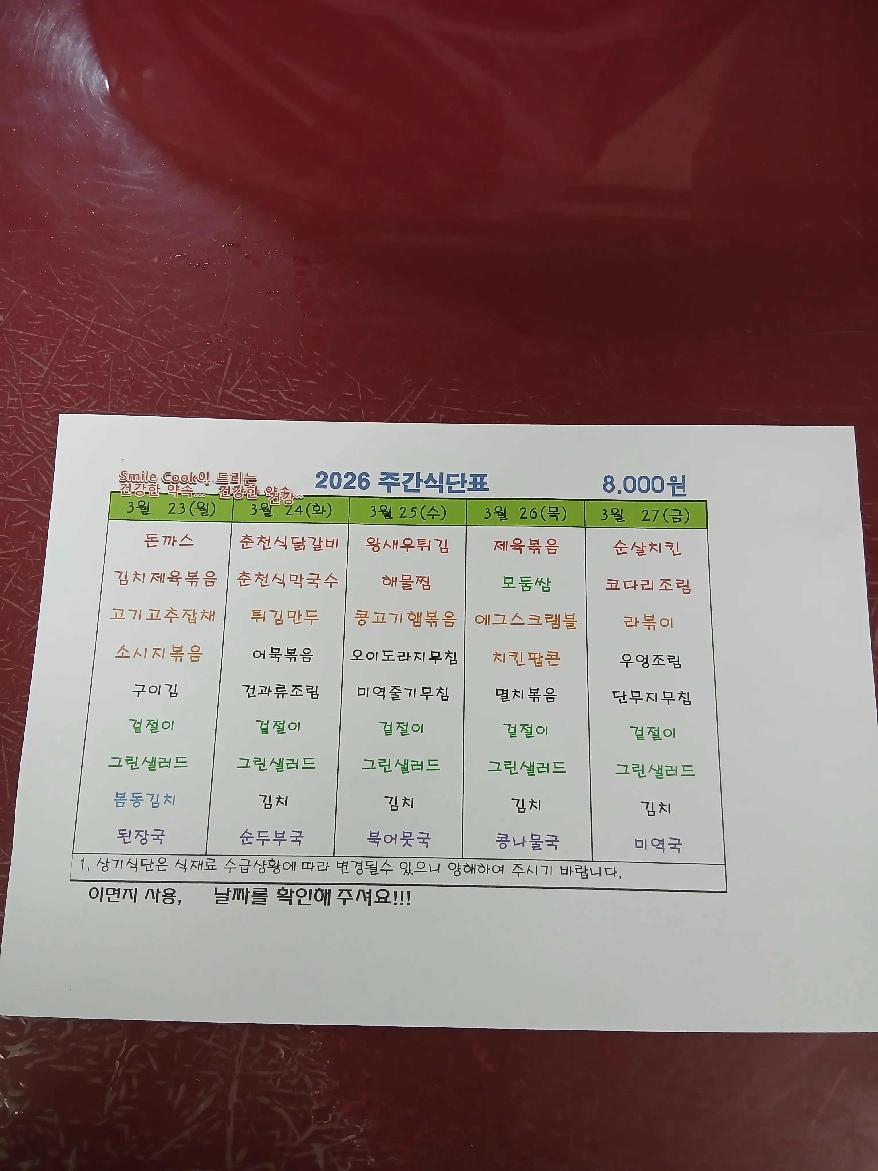주간식단표
