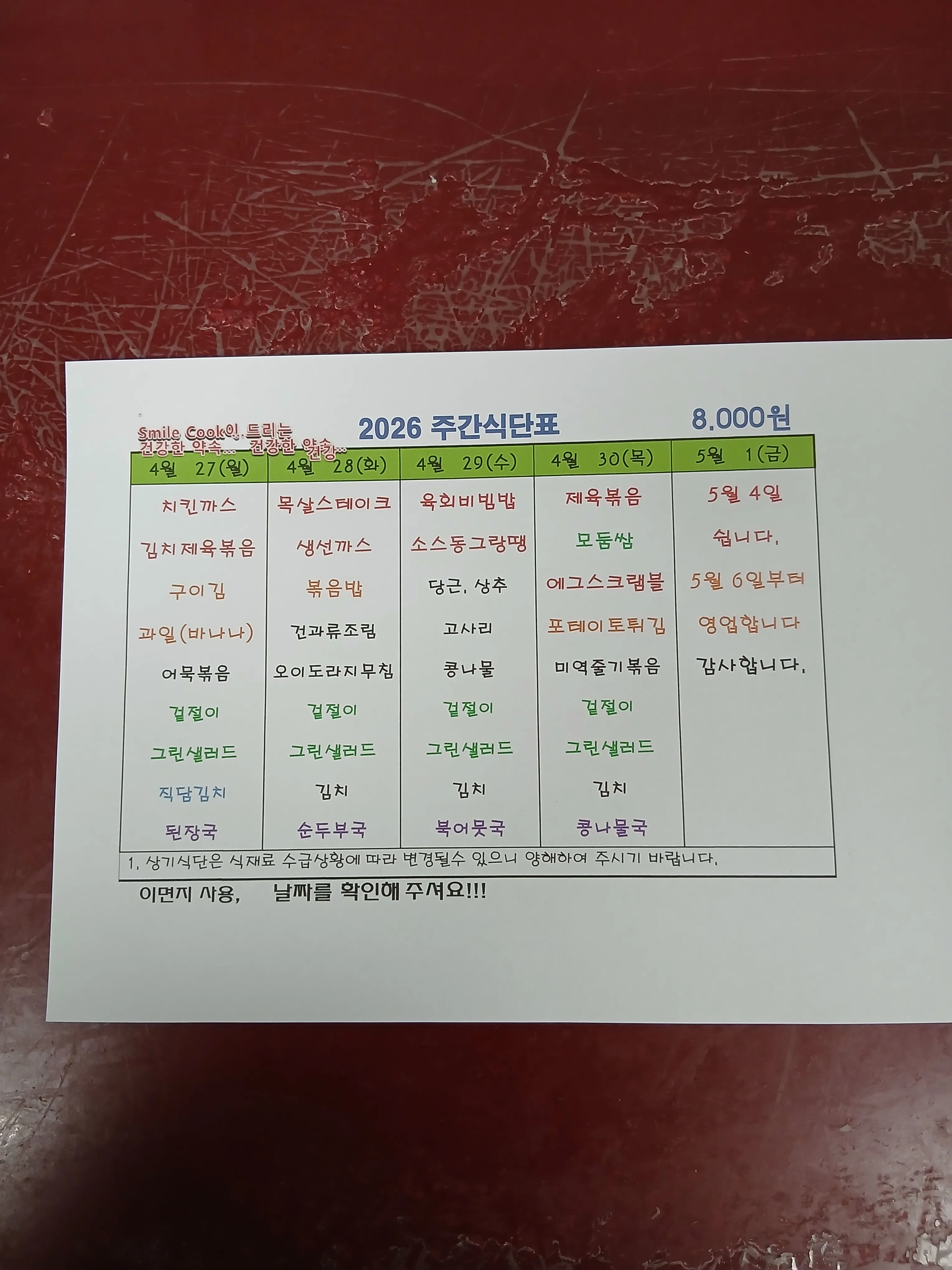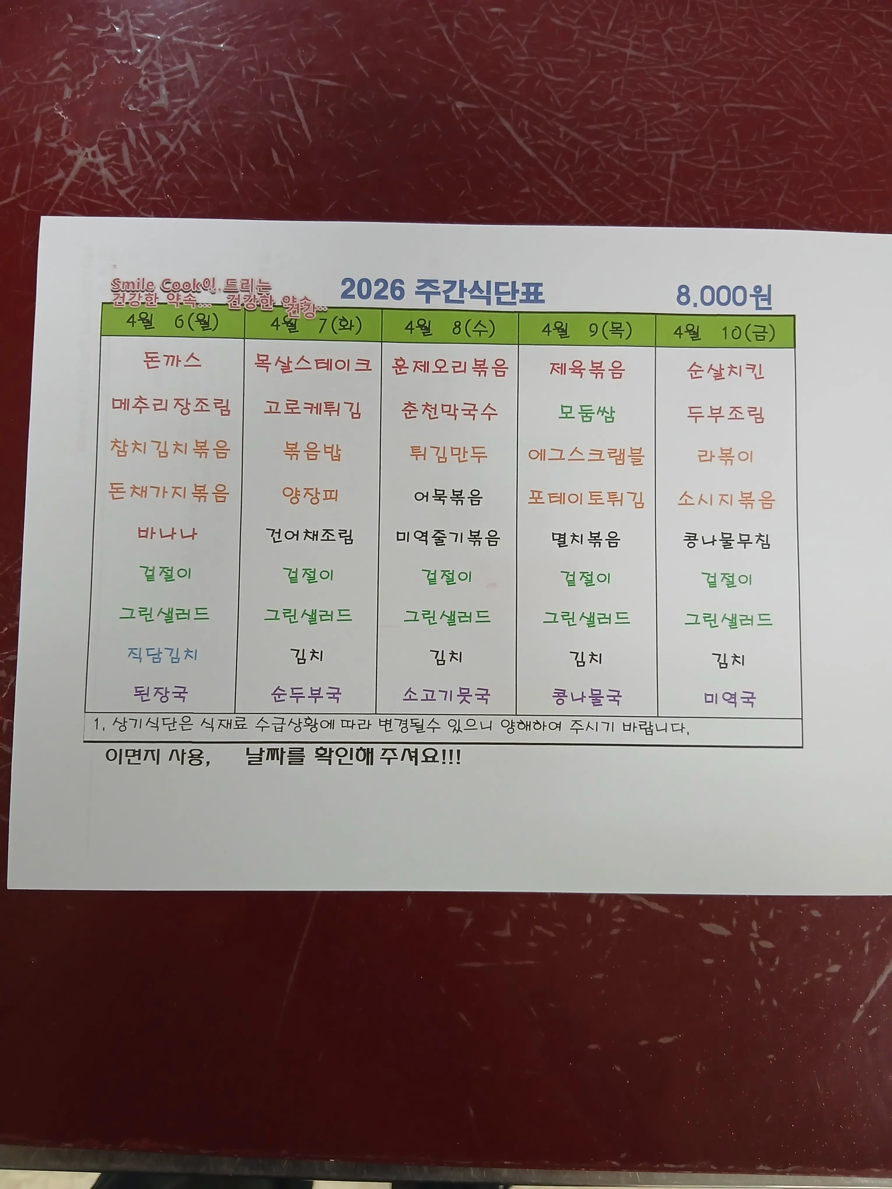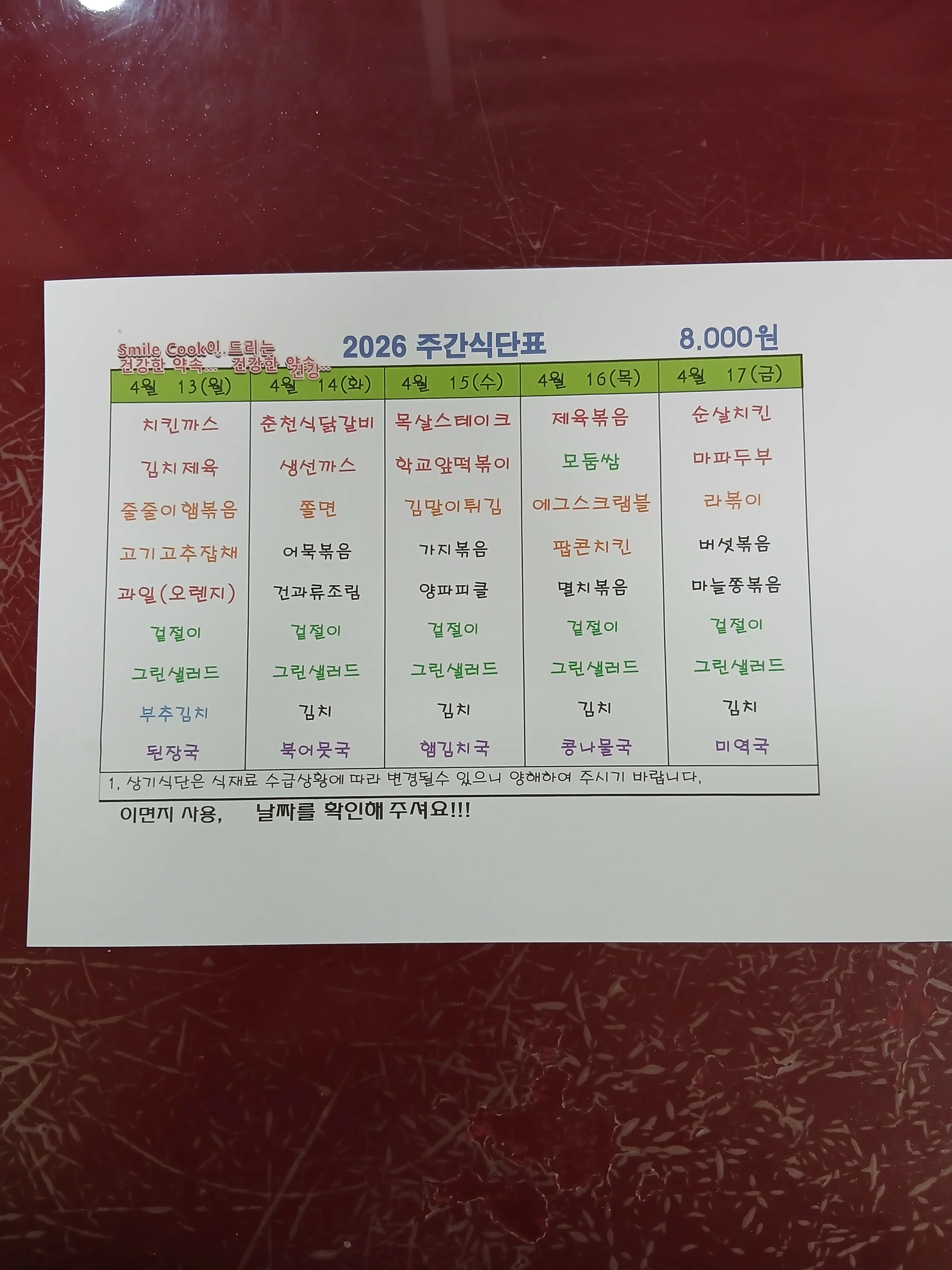 주간식단표