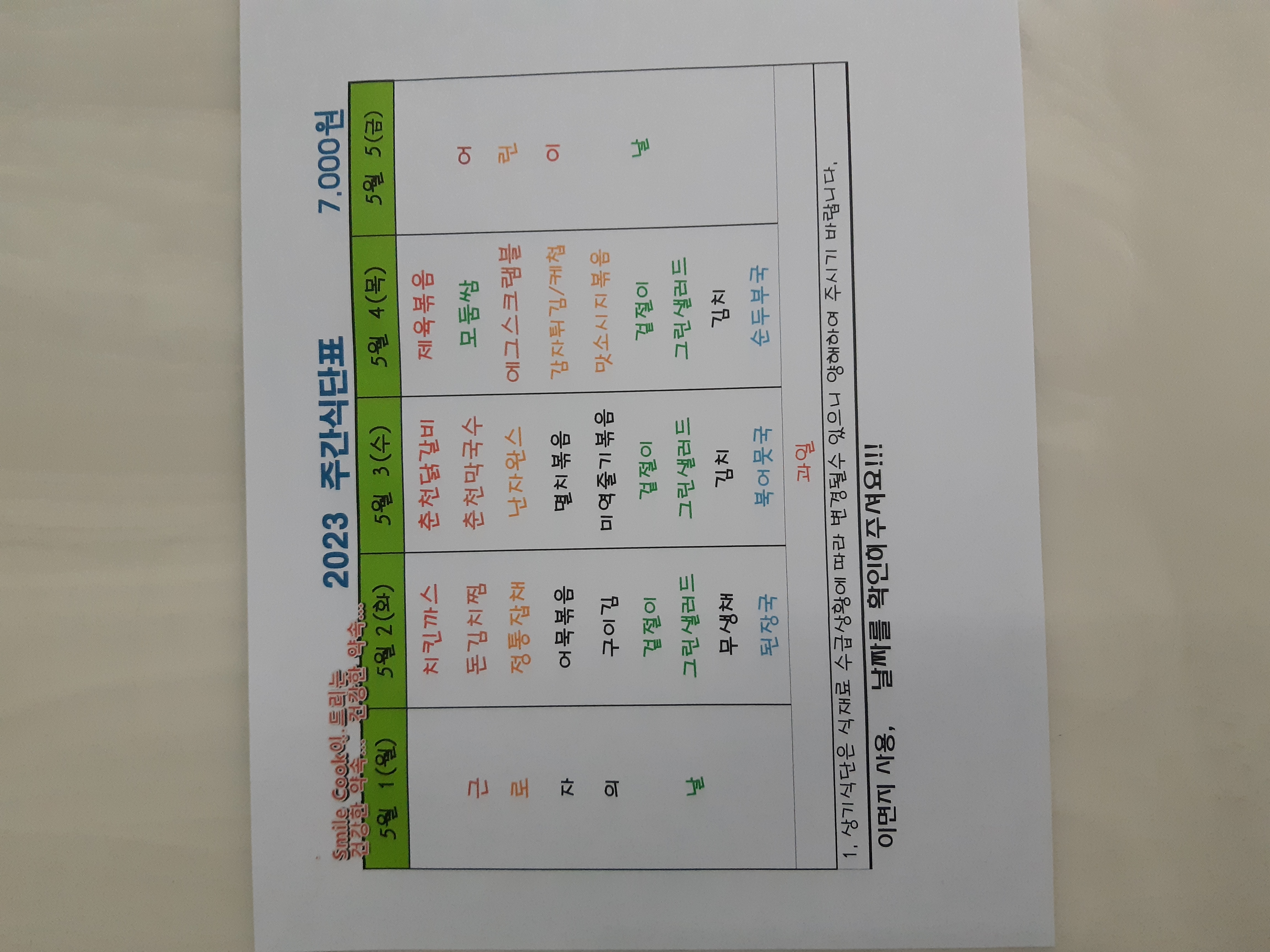 주간식단표