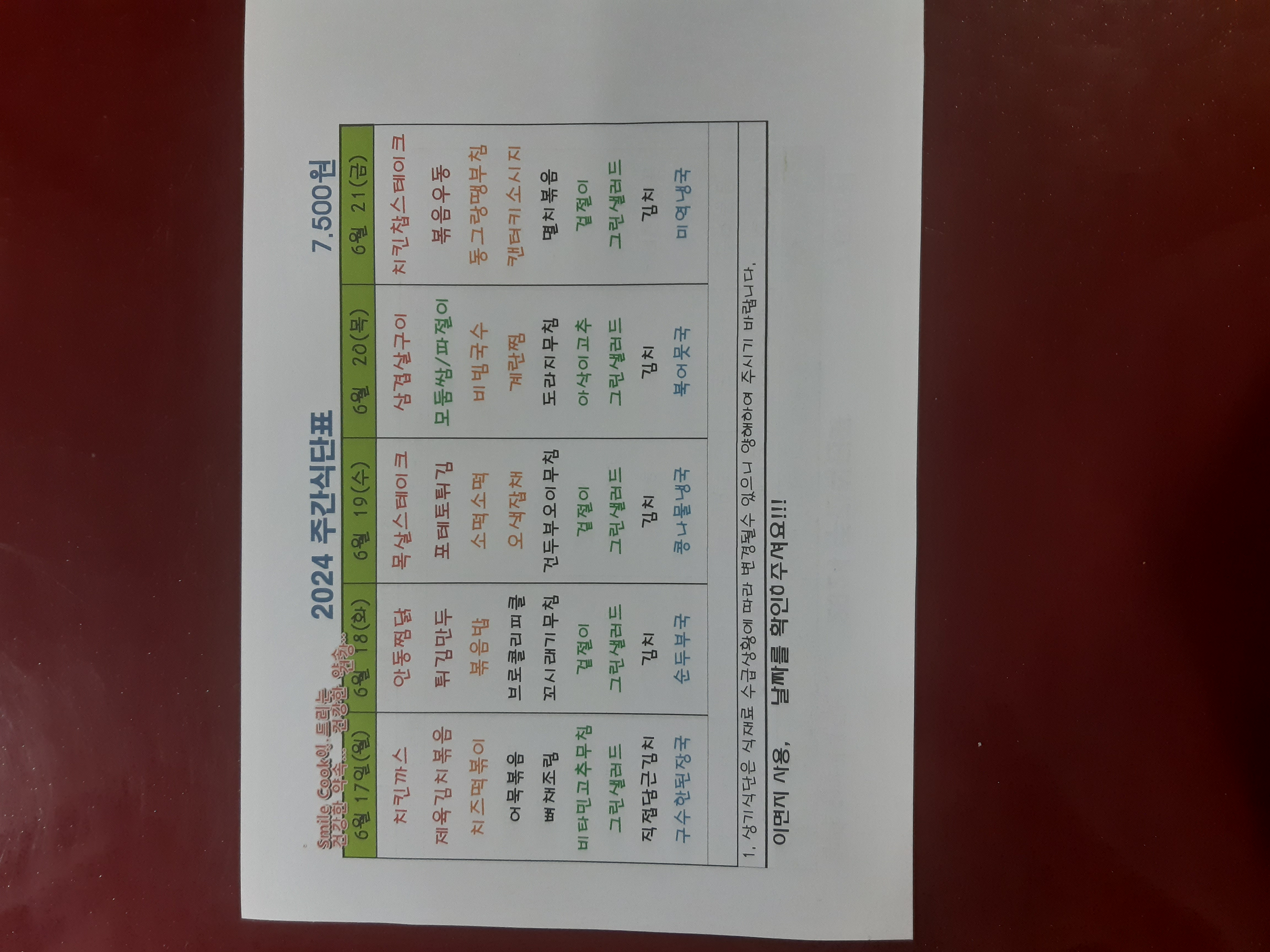주간식단표