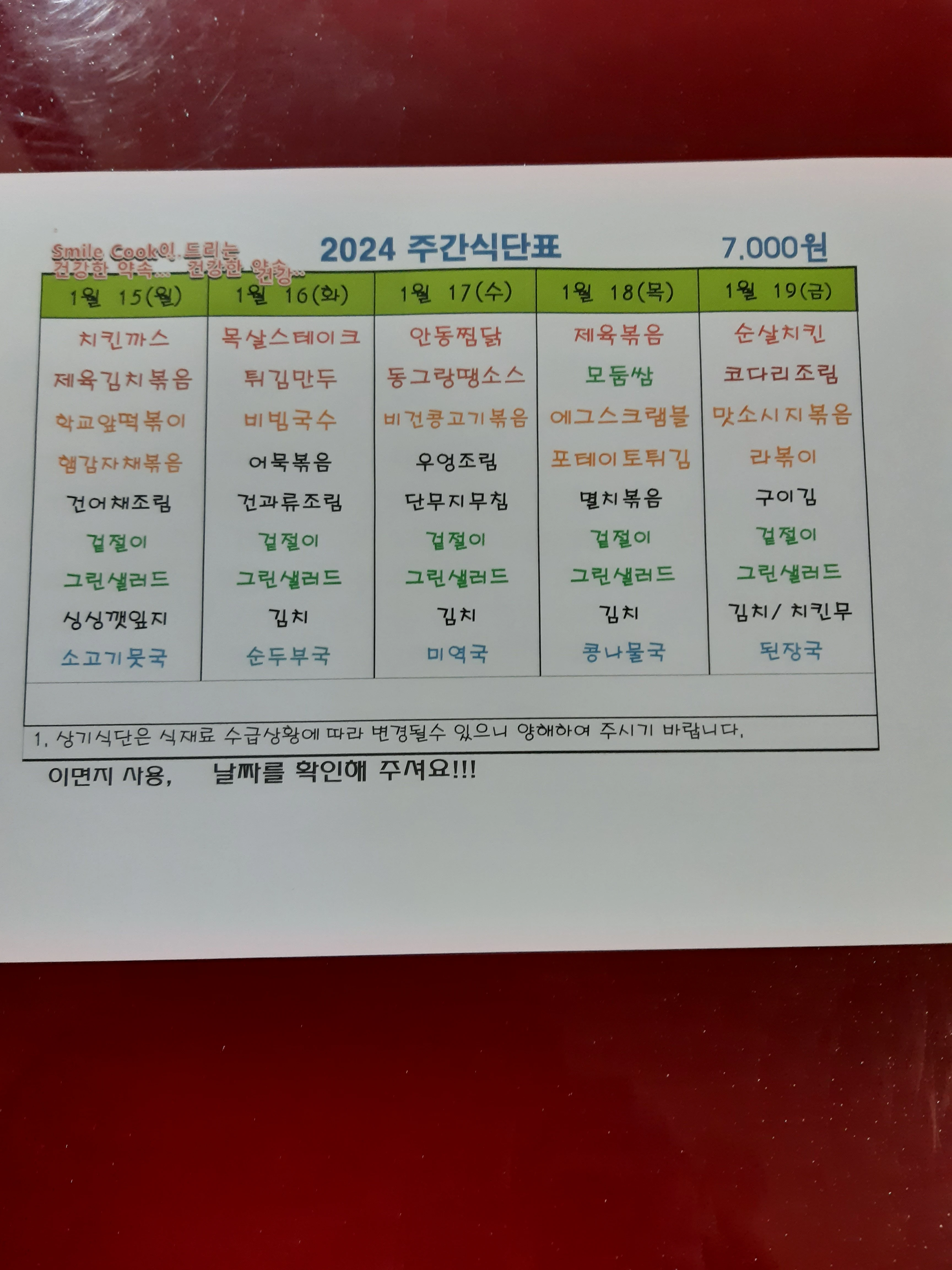 주간식단표