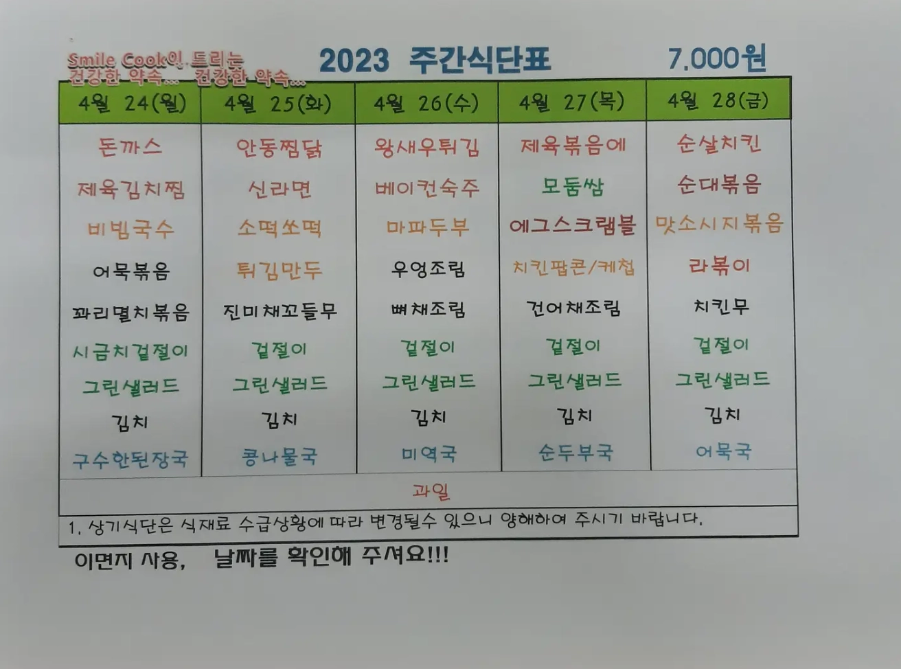 주간식단표