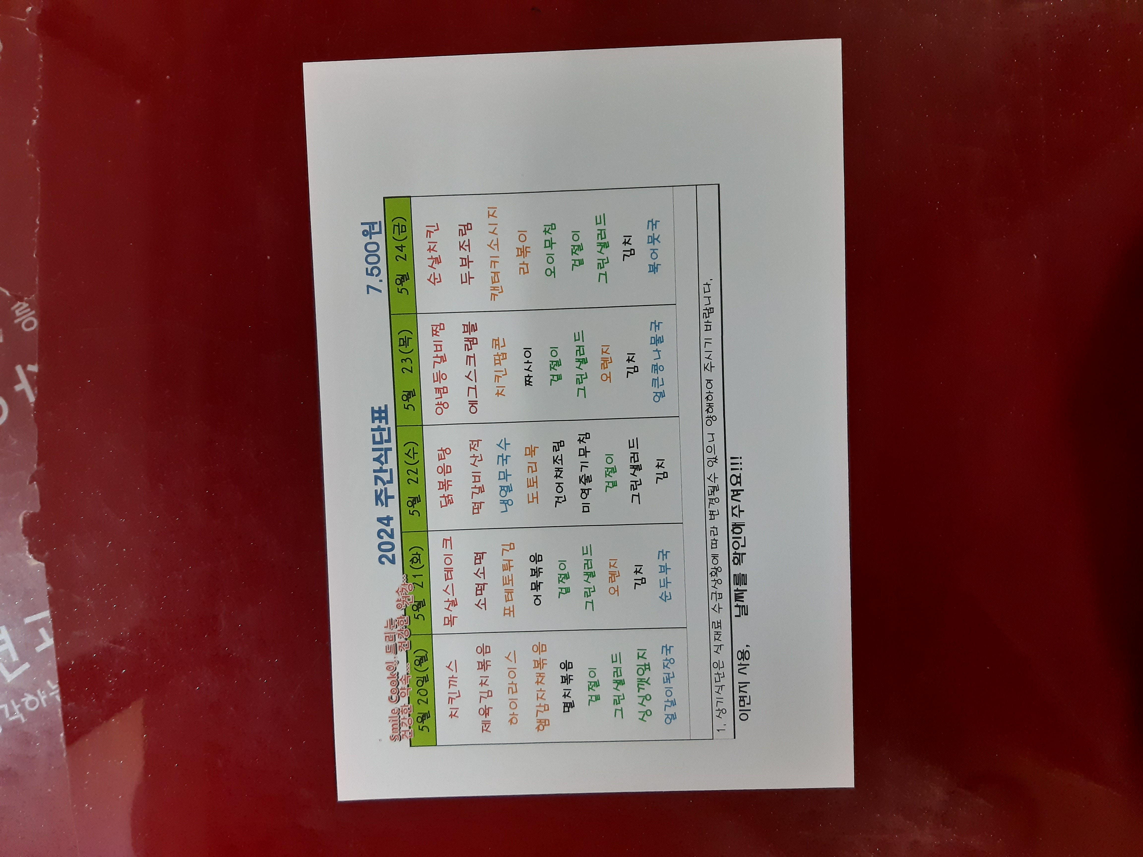 주간식단표