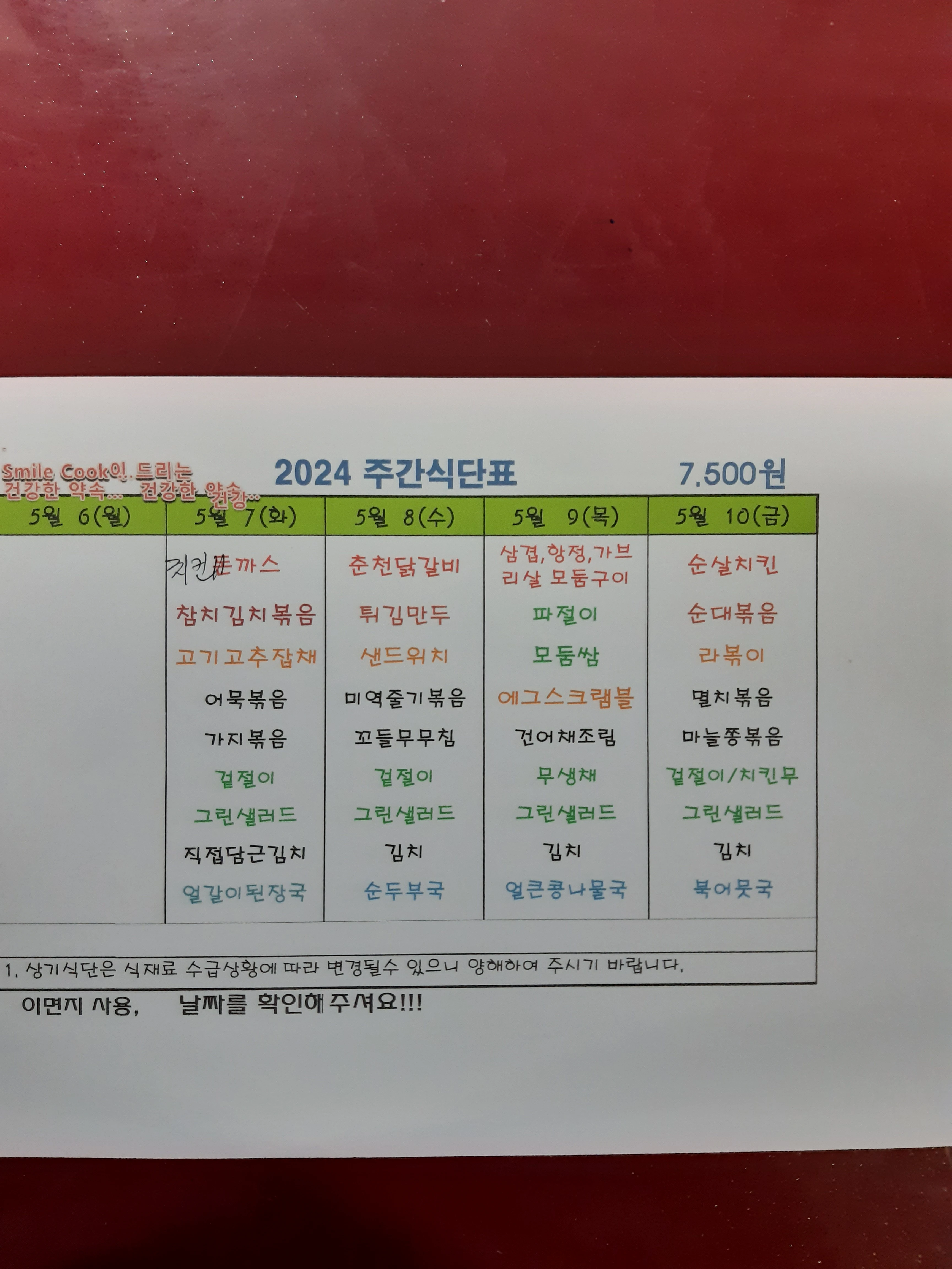 주간식단표