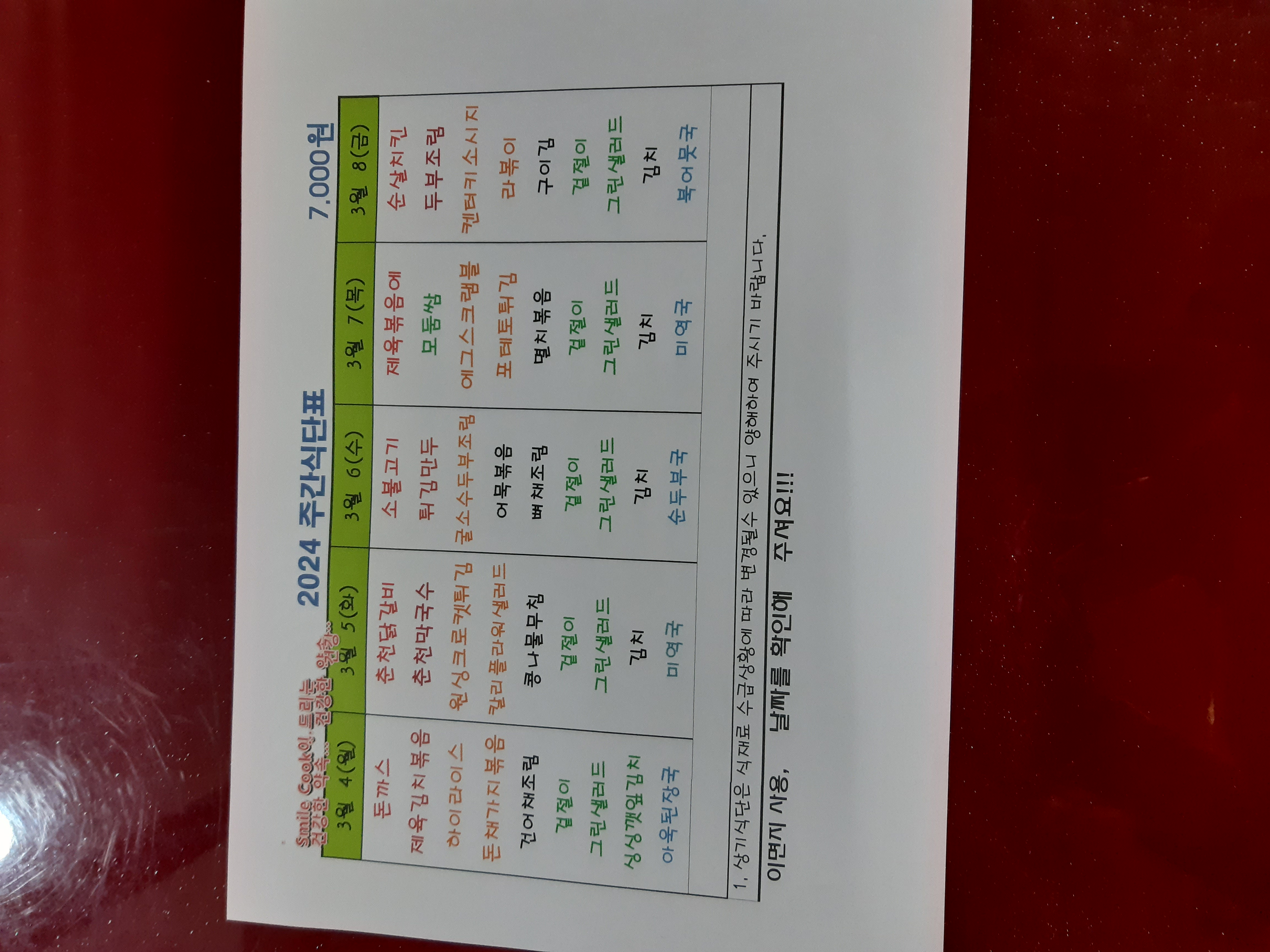 주간식단표