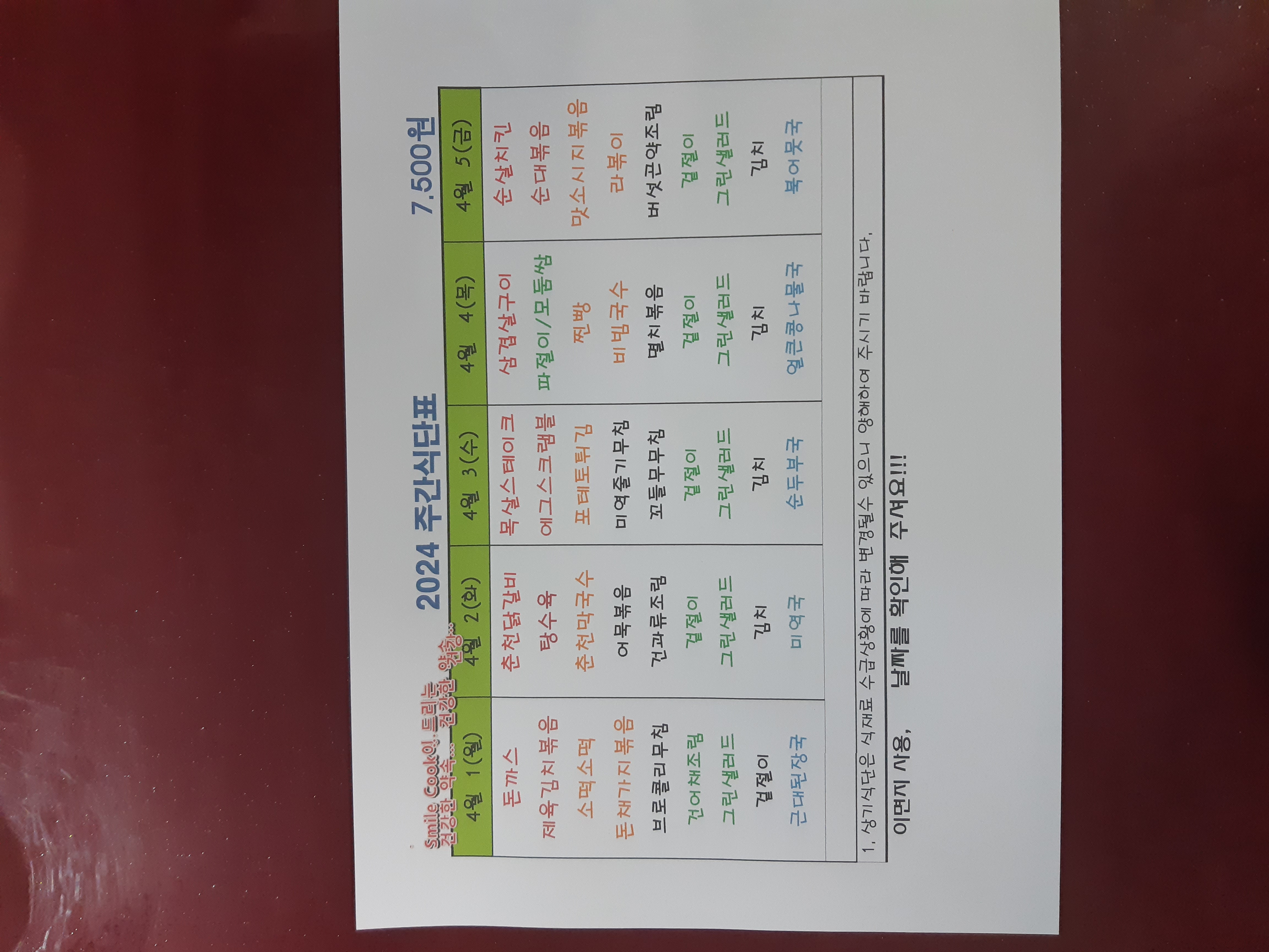 주간식단표