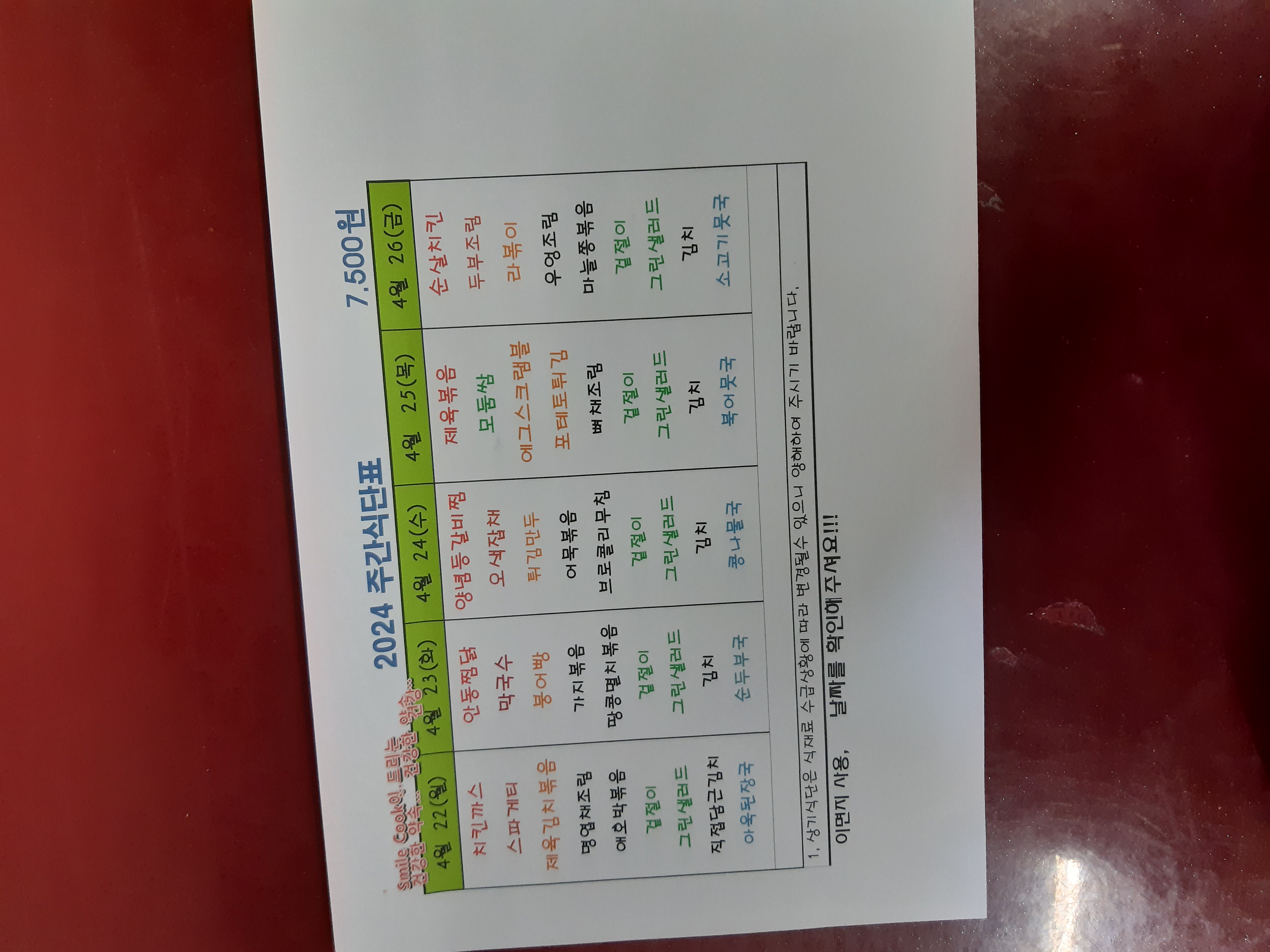 주간식단표