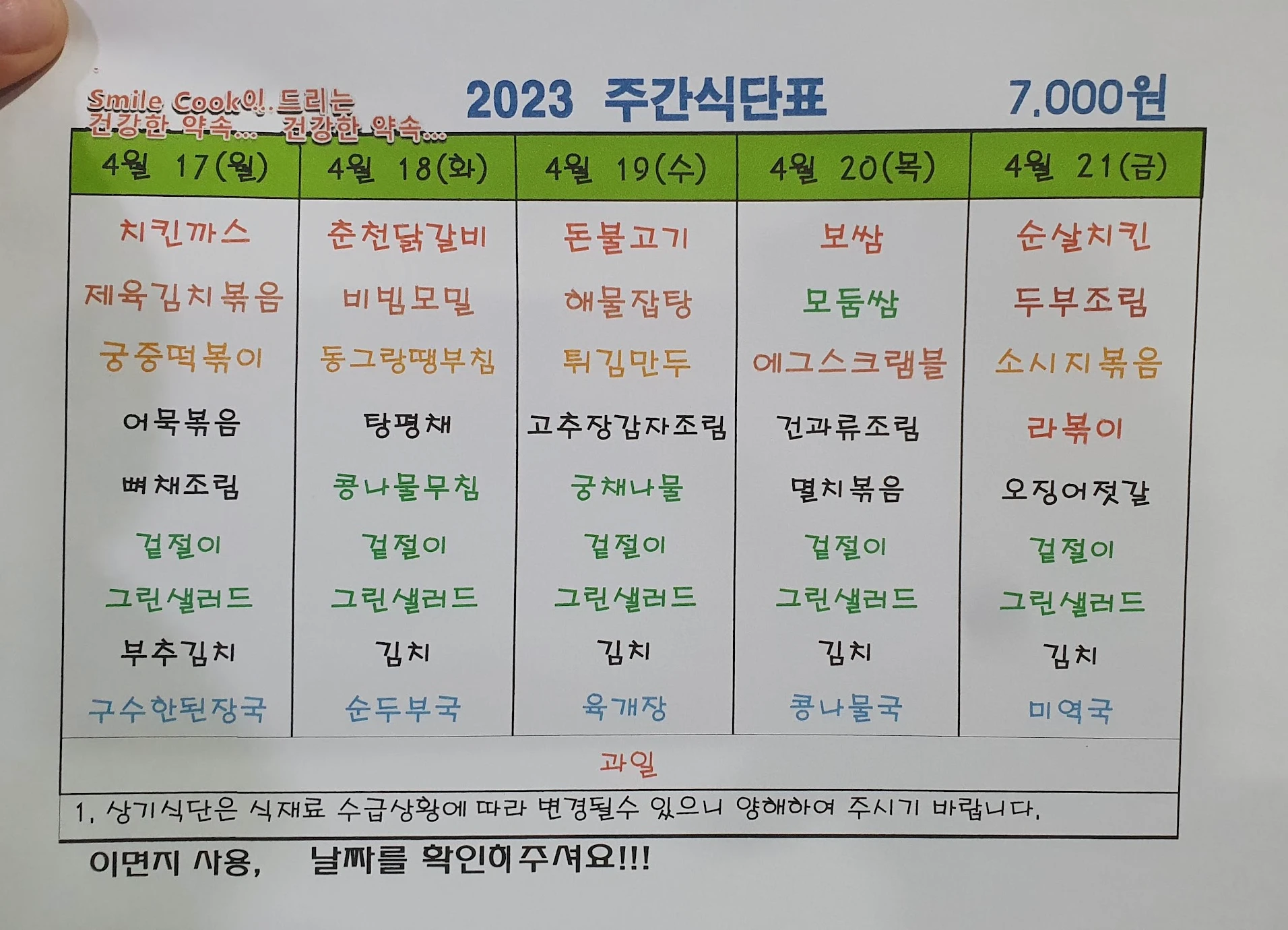 주간식단표