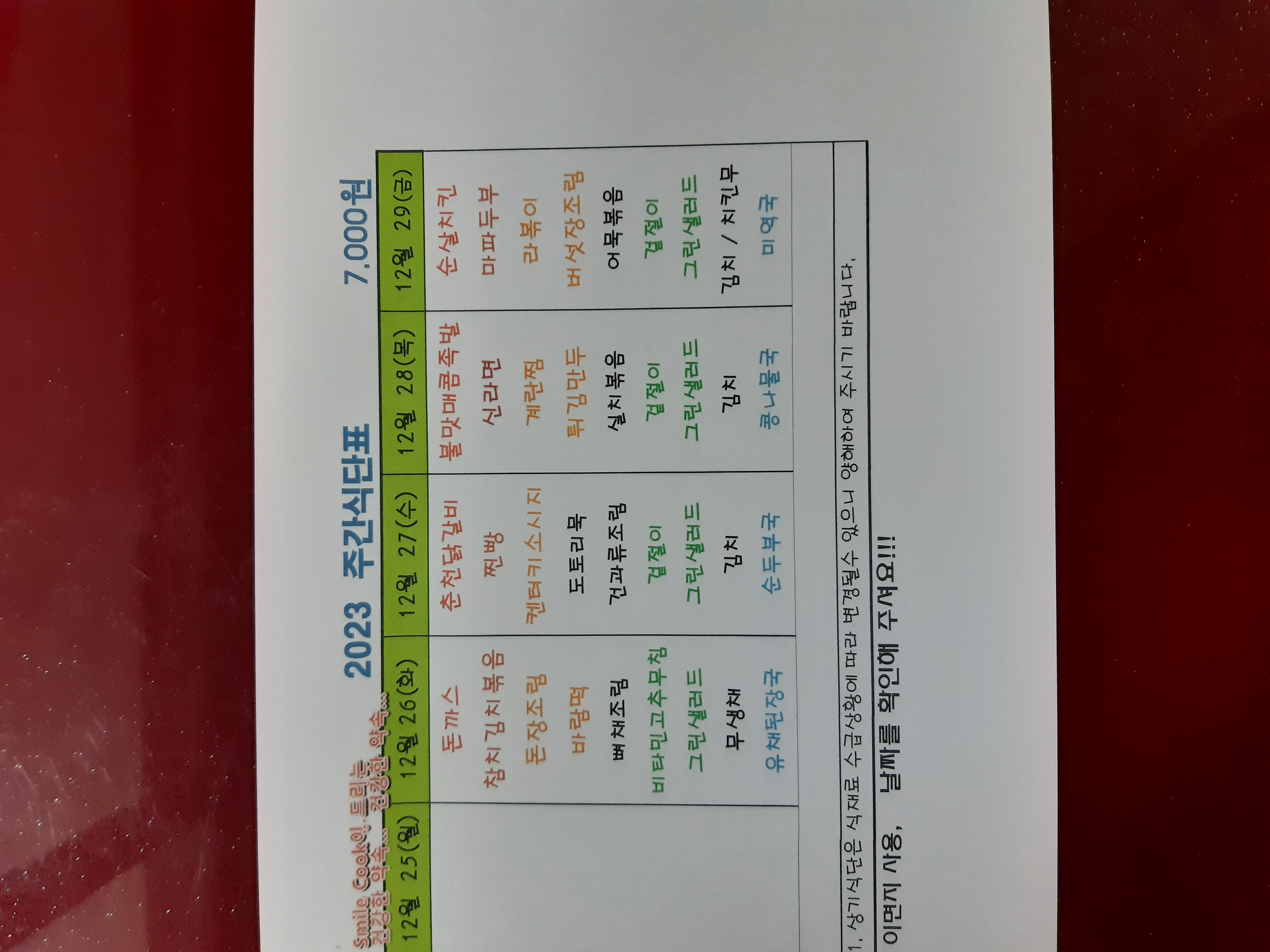 주간식단표