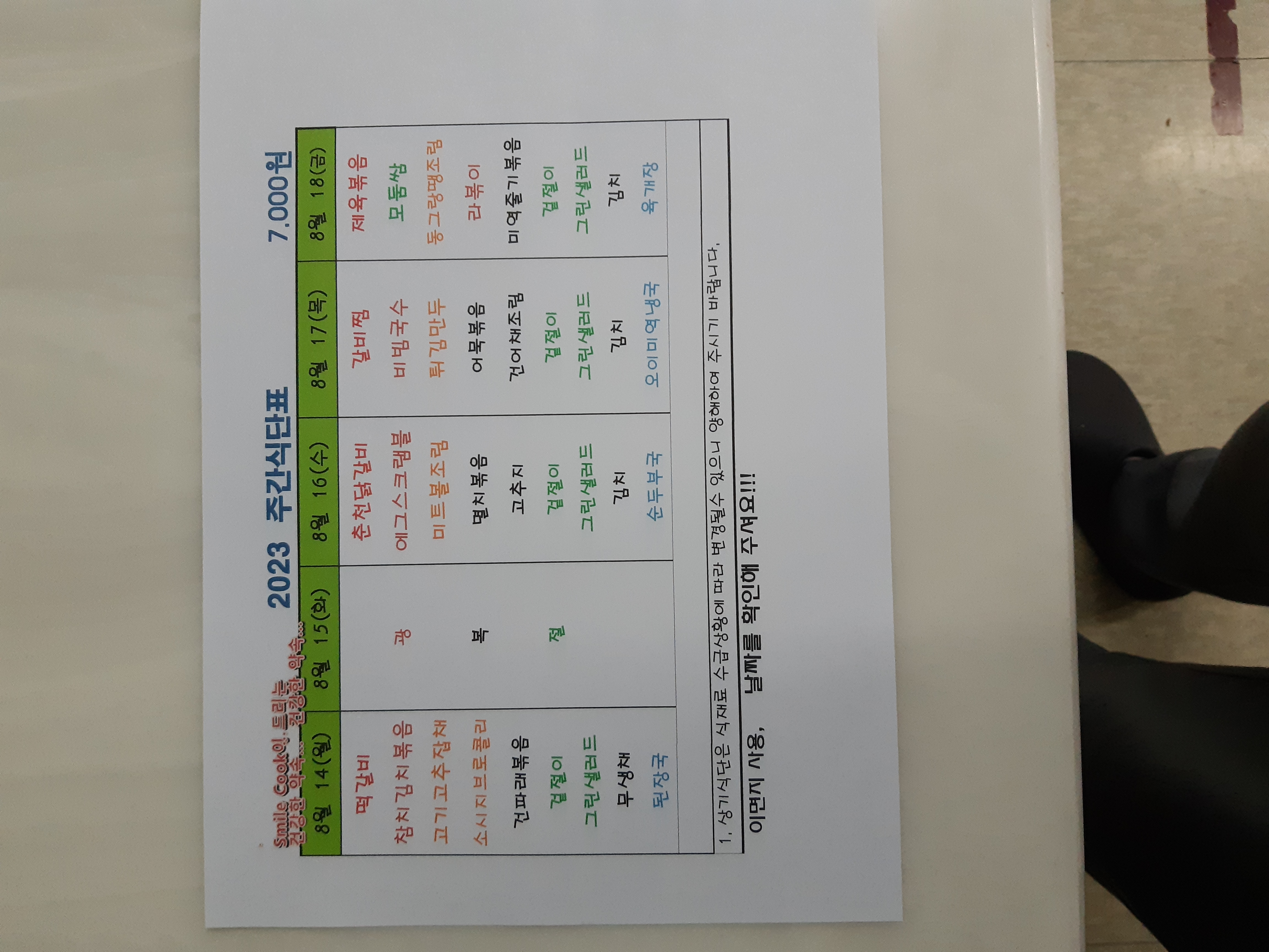주간식단표