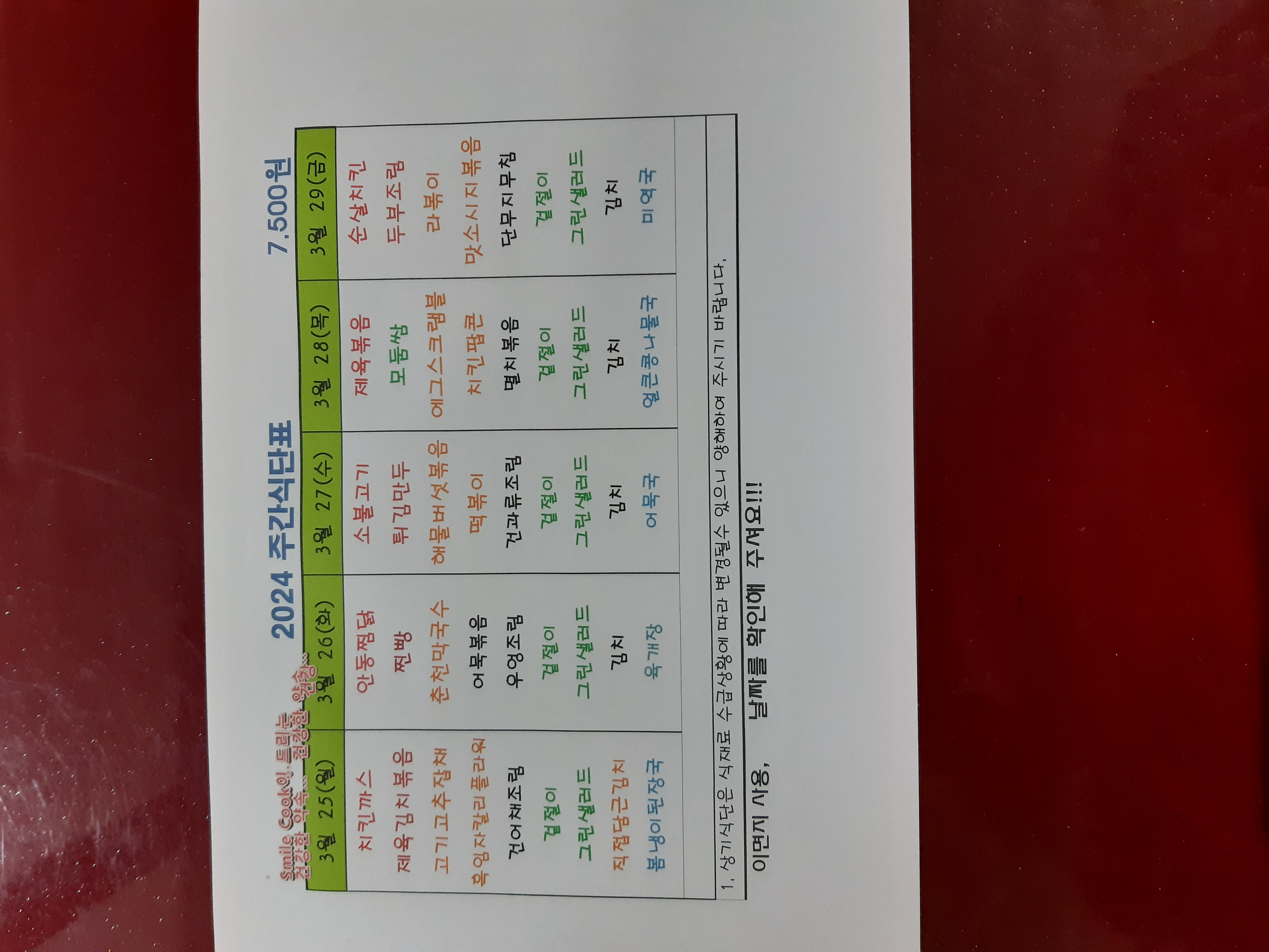 주간식단표