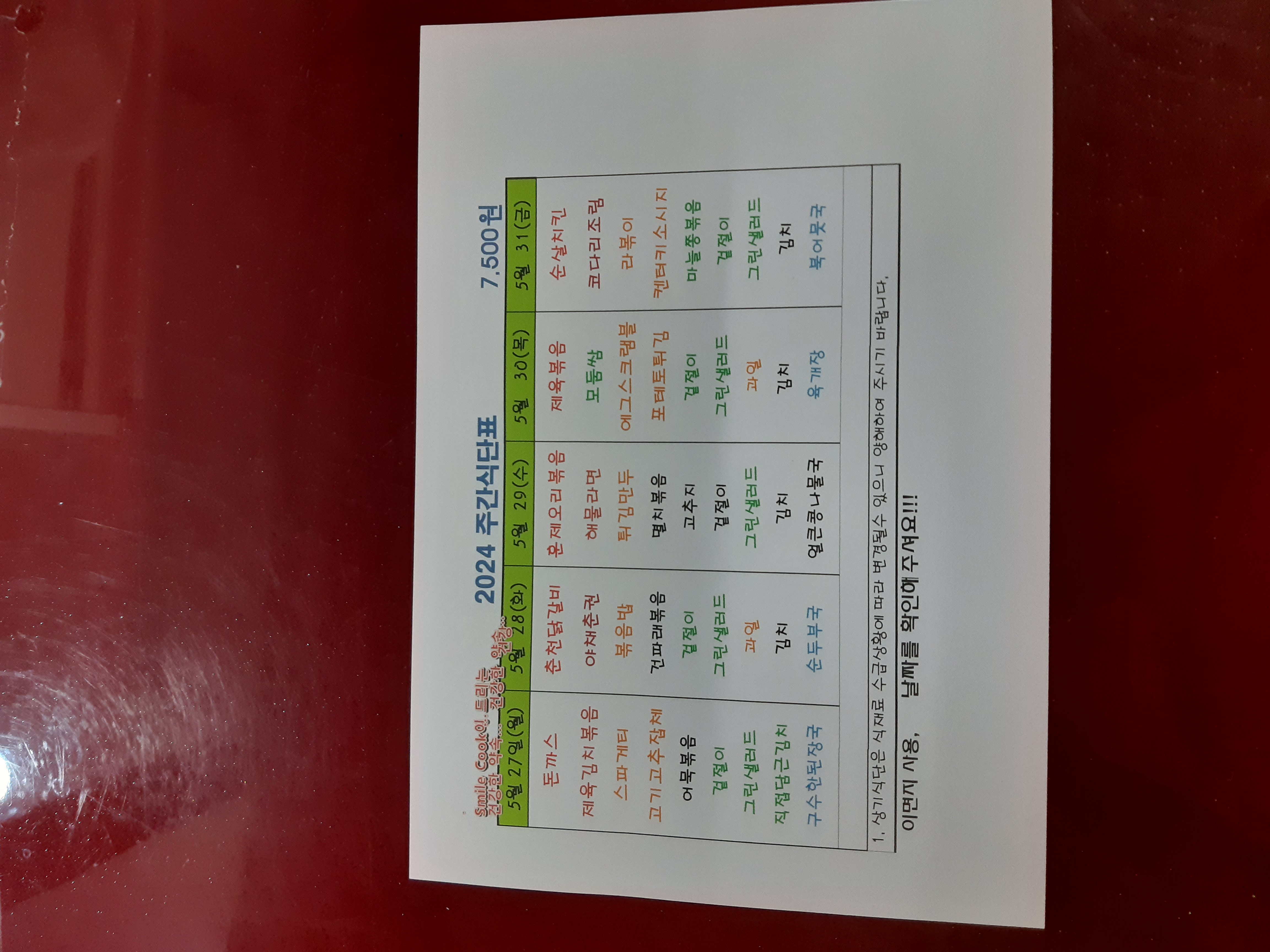 주간식단표