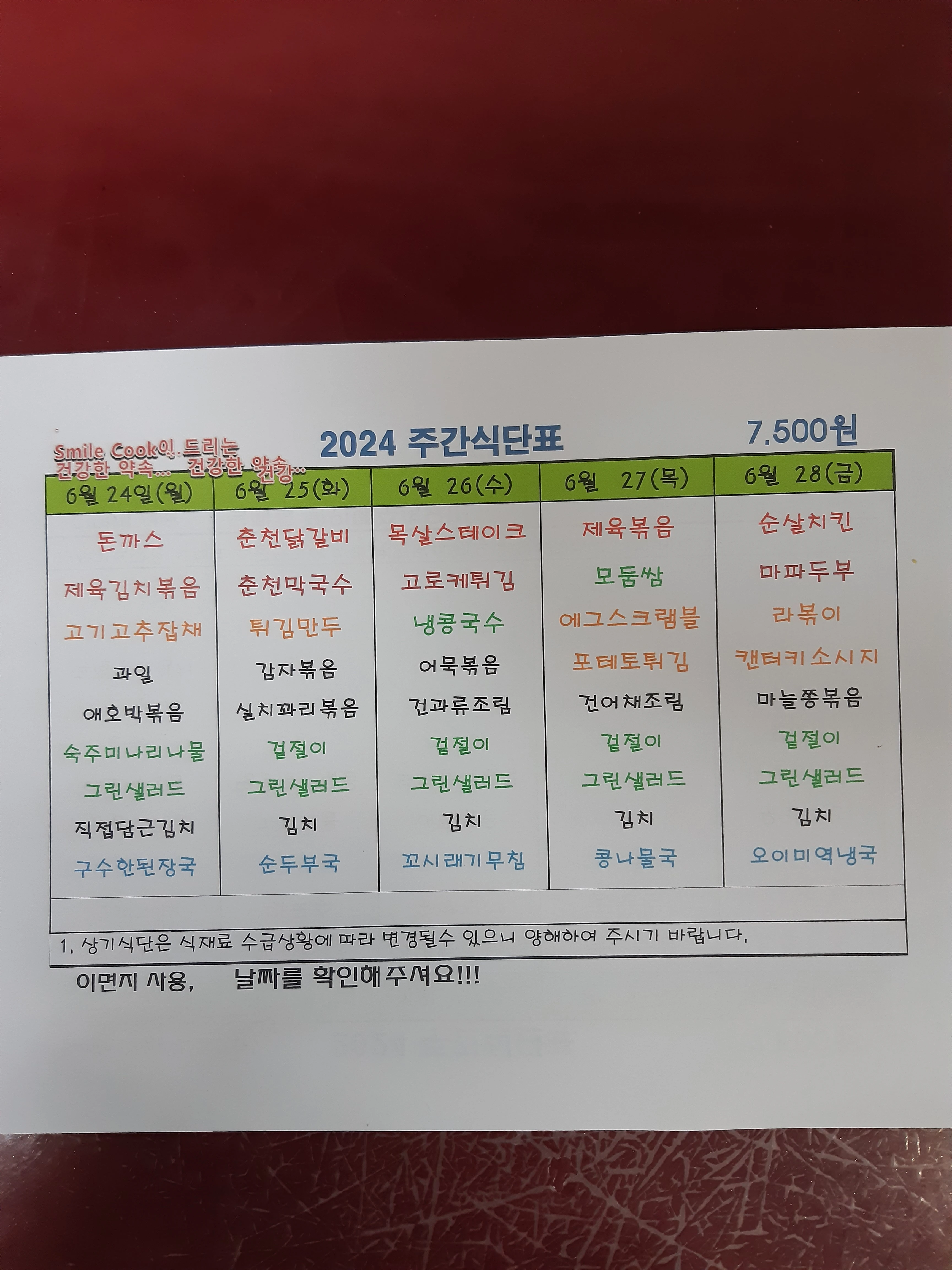 주간식단표