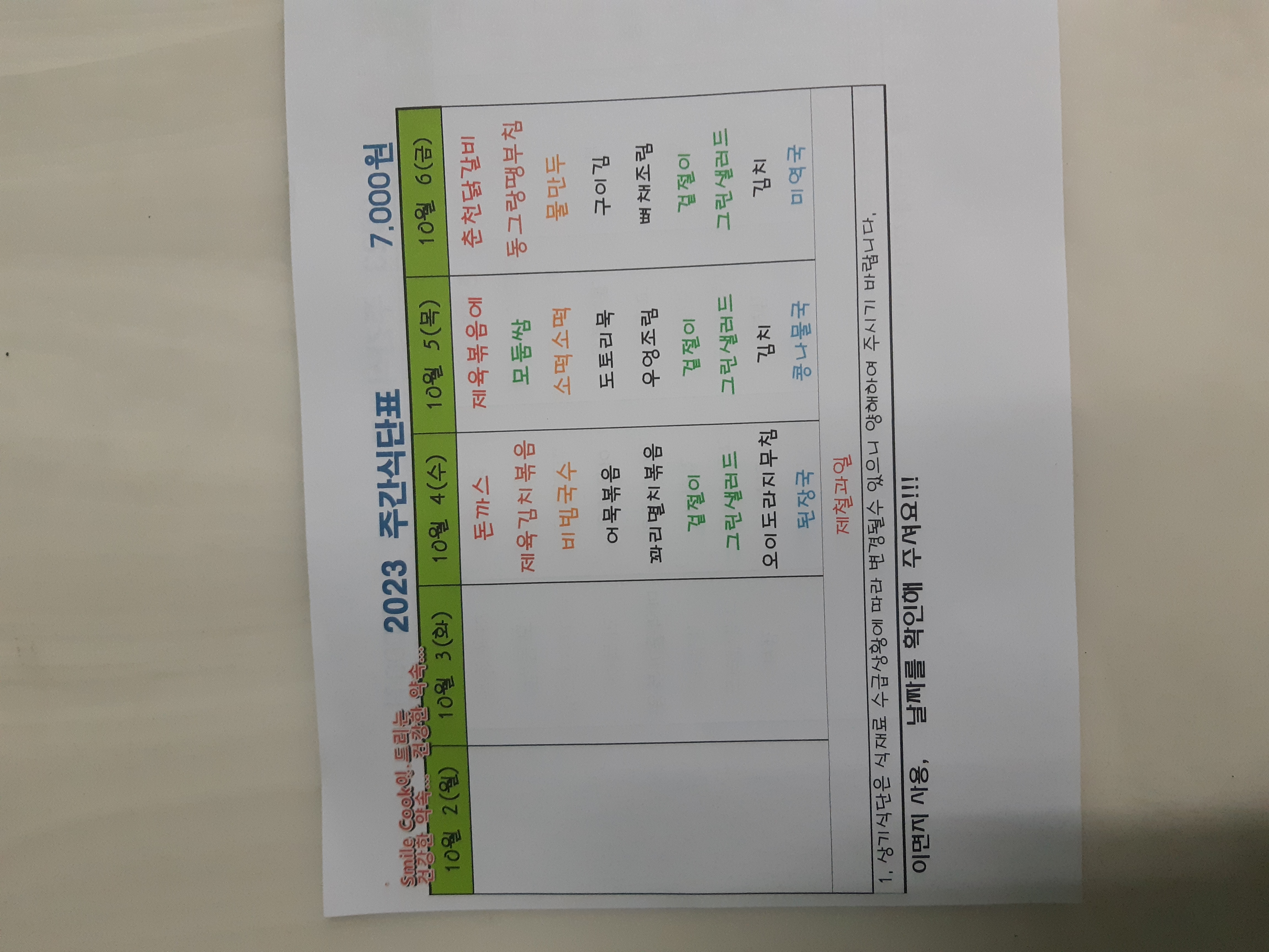 주간식단표