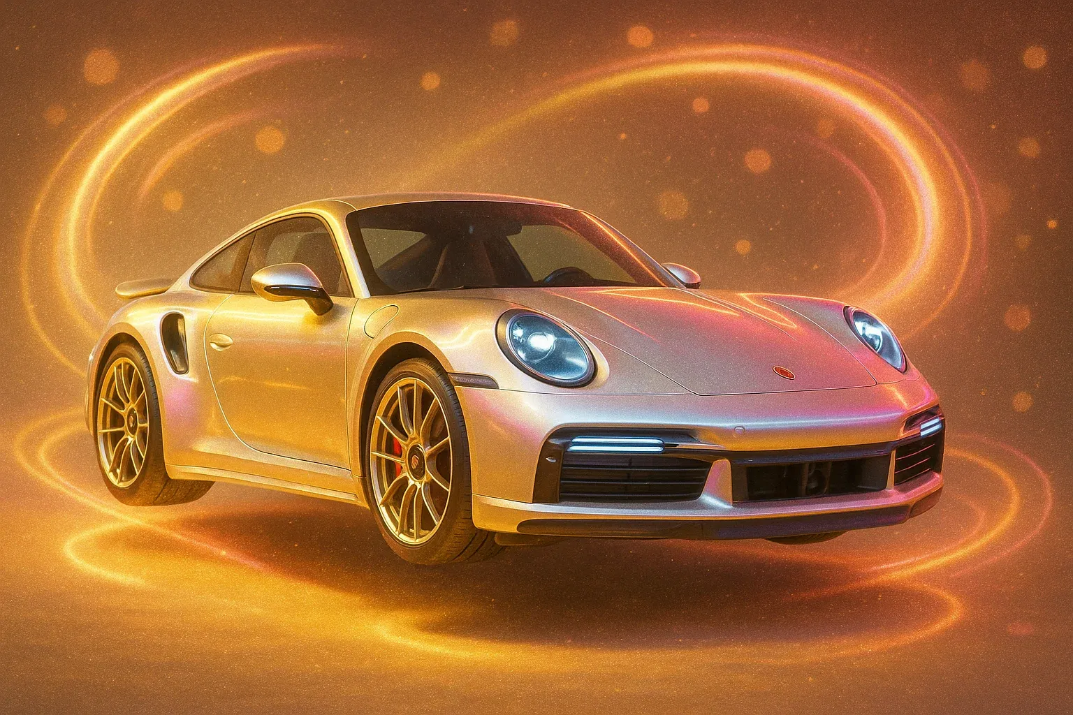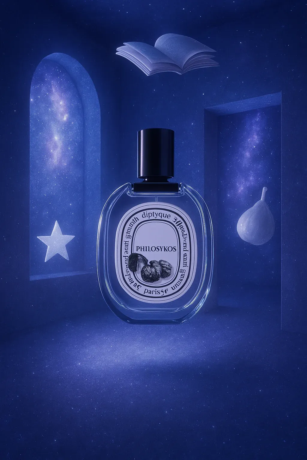 코스믹 룸 샷 – 우주적 조명과 공간 속 제품이 떠 있는 몽환적 구성