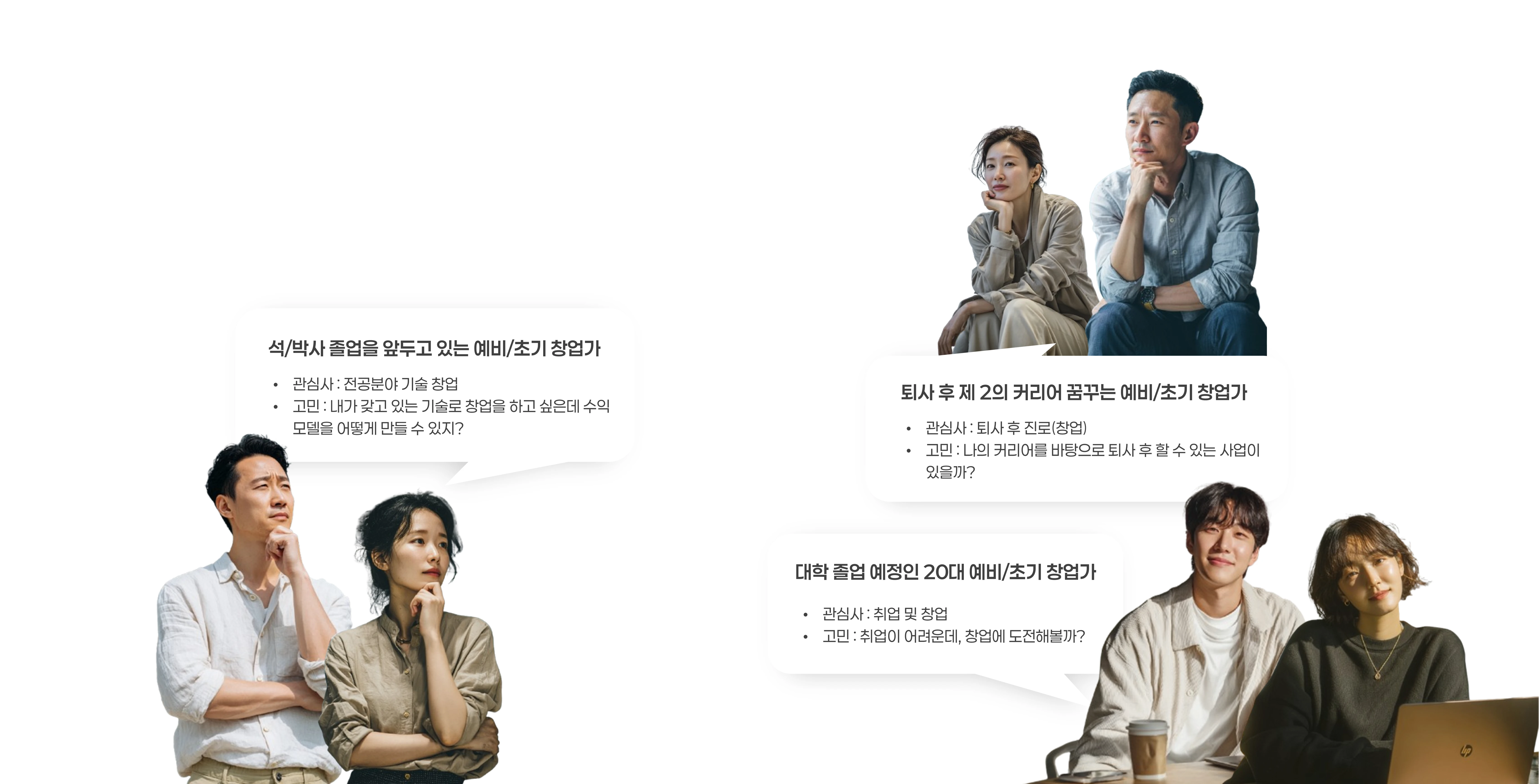 저희는 예비/초기 창업가 및 스타트업들을 위한 서비스들을 운영 및 개발하고 있습니다.