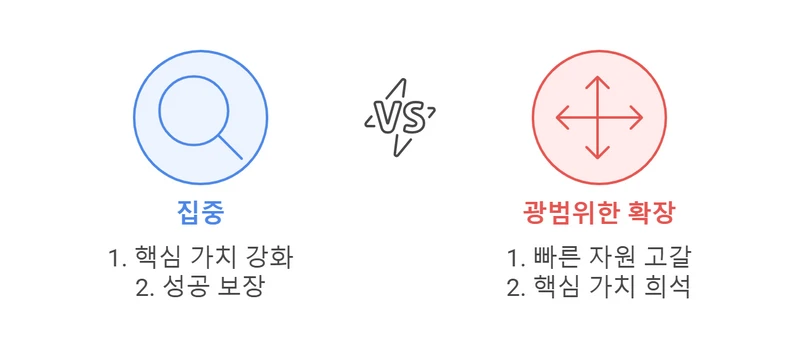 이므로, 한꺼번에 확장하려다 보면 정작 중요한 핵심 가치가 희미해질 수 있습니다.