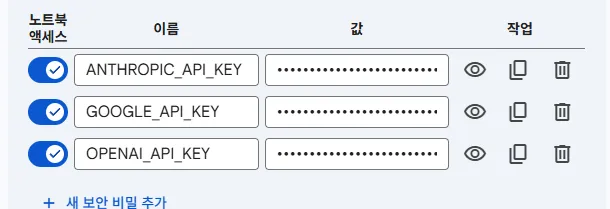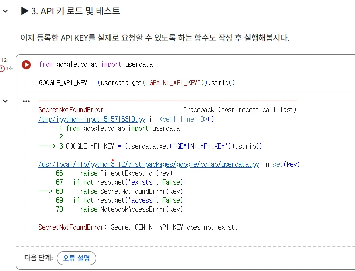 추가로, Gemini api 등록 내용에선 GOOGLE_API_KEY로 이름을 설정하라고 하는데, GEMINI_API_KEY로 바꿔 설정하라고 오류메시지가 뜹니다..ㅜ