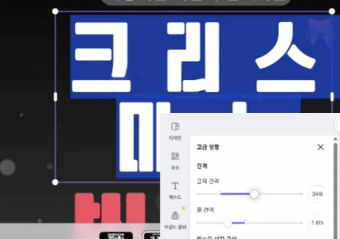 캔바(canva)에서 내 디자인을 '힙'하고 '톡톡' 튀게 만들어줄 '텍스트 효과'와 '고급 설정'을 영상으로 함께 따라 해 볼 거예요! 캔바 입문 가이드 03 내용을 참고하면 좋아요! 캔바 툴바의 '효과' 버튼만 누르면, 글자를 순식간에 그림자처럼 입체적으로 만들 수도 있고, 네온처럼 반짝이게 만들 수도 있어요! 영상에 나온 핵심 스타일을 먼저 익혀보세요. ​ 효과를 선택한 후에는 오프셋(거리), 방향, 투명도, 색상 등을 조절해서 나만의 느낌을 만들 수 있어요! 영상에서 제가 색깔 바꾸는 것 보셨죠? 고급 설정: 글자 사이 간격, 완벽하게 조절하기! 디자인을 딱 봤을 때 어딘가 모르게 어색하다면? 바로 글자 간격 (자간) 때문일 수 있어요! ​ 텍스트 박스 선택 후 툴바에서 '고급 설정' 아이콘 (세 줄에 화살표)을 클릭하세요. ​ '자간'과 '행간' 슬라이더를 왼쪽/오른쪽으로 움직이면서 간격을 조절해 보세요.