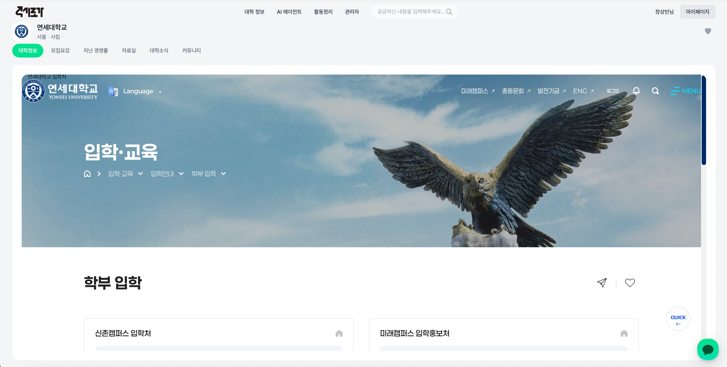 검색창에 정보를 찾고자 하는 대학명 입력 후 선택하세요