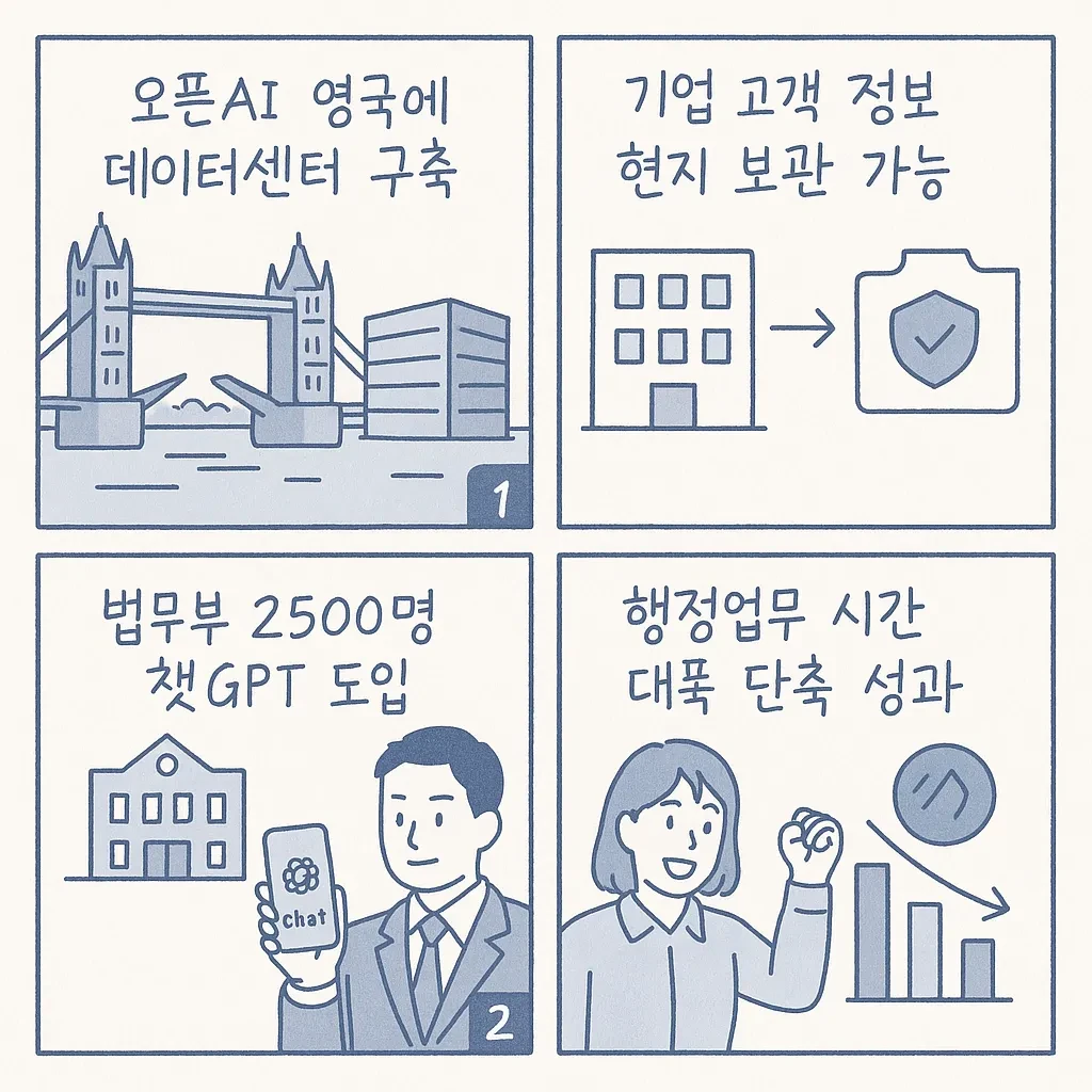 오픈AI가 영국 정부와 손잡고 현지 데이터 저장 서비스를 시작합니다. 챗GPT 기업 고객들은 이제 대화 내용과 업로드 파일을 영국 내에 보관할 수 있게 됐죠. 개인정보 보호와 사이버 보안 강화가 목적이라고 하는데요. 이번 협약으로 영국 법무부 직원 2,500명이 챗GPT를 업무에 활용하게 됩니다. 시범 운영 결과, 행정 업무와 법률 검토 시간이 크게 단축됐다고 하죠. 공공 서비스 개선에 AI가 본격 투입되는 셈입니다. 샘 알트먼 CEO는 "지난 1년간 영국 내 챗GPT 사용자가 4배나 늘었다"고 밝혔습니다. 실제로 영국 공무원들은 이미 AI 비서 '험프리'와 자동 분류 도구 '컨설트'를 활용 중이죠. 몇 주 걸리던 작업이 몇 분으로 줄었다고. 영국 기술부 장관은 "AI로 공공 서비스를 혁신하고 성장을 이끌겠다"고 강조했습니다. 의료진과 보호관찰관 등이 행정 업무 대신 핵심 업무에 집중할 수 있게 된다고 하네요. 원문 보러가기