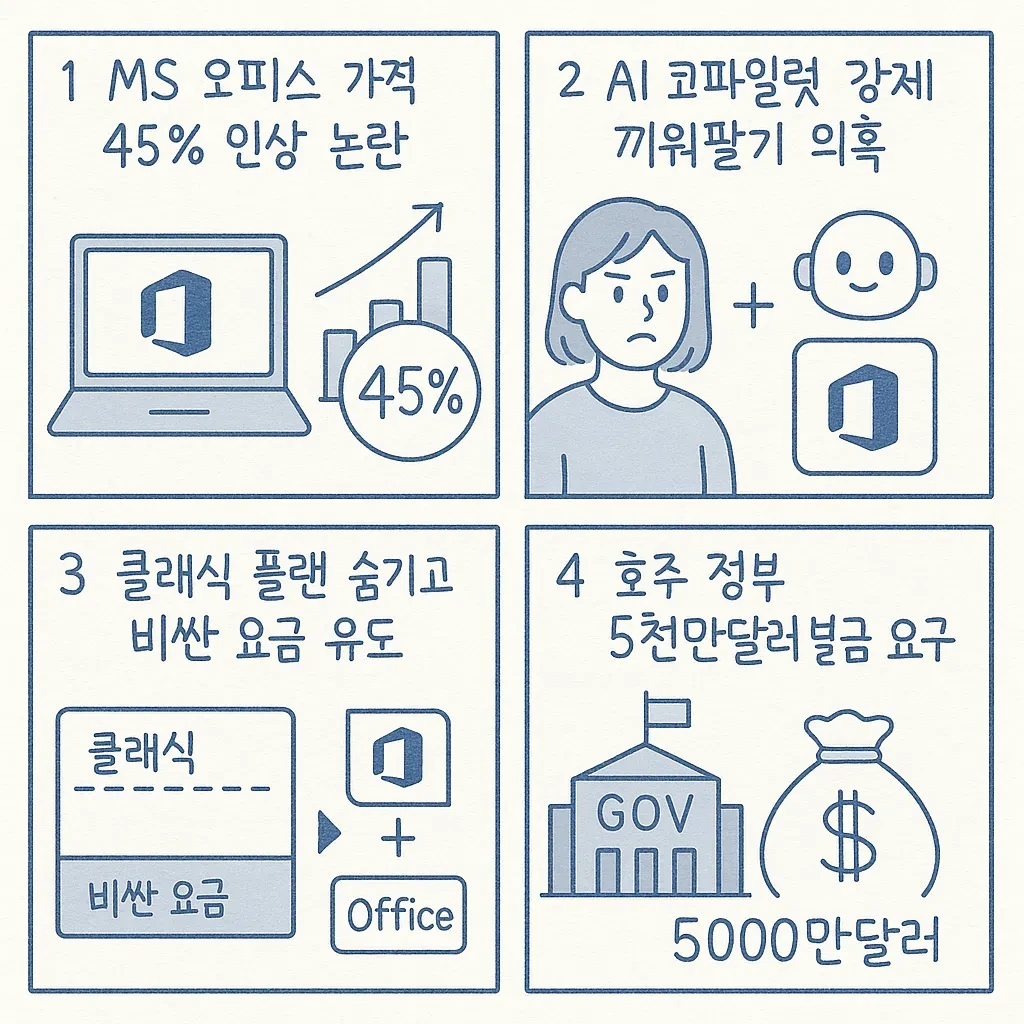 마이크로소프트가 오피스 365 가격을 45% 인상하면서 고객들을 속였다는 혐의로 호주 정부에 고소당했습니다. 호주 공정거래위원회(ACCC)는 약 270만 명의 고객에게 중요한 선택권을 숨겼다고 주장하는데요. AI 기능인 '코파일럿'을 강제로 끼워팔았다는 겁니다. 마이크로소프트는 고객들에게 두 가지 선택만 제시했죠. 인상된 가격을 받아들이거나 구독을 취소하는 것이었습니다. 하지만 실제로는 AI 없이 기존 가격을 유지하는 '클래식 플랜'이 있었다고. 이 옵션은 고객이 해지를 시도할 때만 보여줬다는데요. 개인 플랜은 연 109달러에서 159달러로 45% 올랐습니다. 가족 플랜은 139달러에서 179달러로 29% 인상됐죠. ACCC는 "마이크로소프트가 의도적으로 클래식 플랜을 숨겨 더 비싼 요금제로 유도했다"고 비판했습니다. 호주 정부는 최대 5천만 달러의 벌금을 요구하고 있습니다. 마이크로소프트는 "소비자 신뢰와 투명성이 최우선"이라며 "규제 당국과 건설적으로 협력하겠다"고 하네요. 원문 보러가기