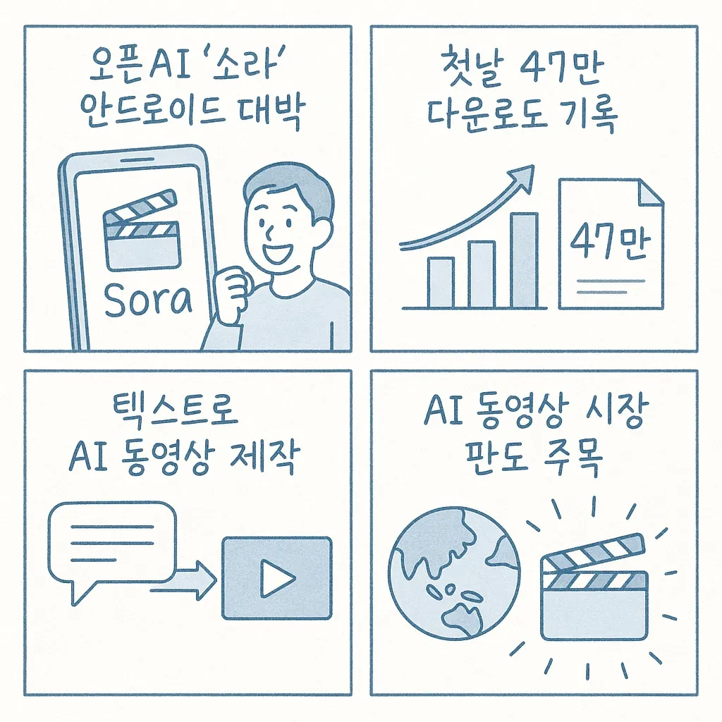 오픈AI '소라' 안드로이드 출시 첫날 47만 다운로드 폭발... iOS 대비 4배 성장