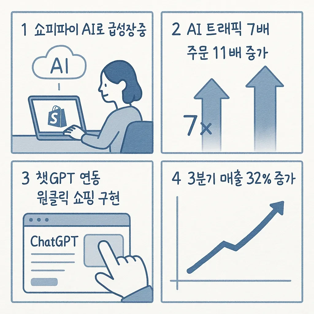 쇼피파이가 AI를 전면에 내세우며 급성장하고 있습니다. 할리 핑켈스타인 사장은 "AI는 단순한 기능이 아니라 우리가 만드는 모든 것의 중심"이라고 강조했죠. 실제로 1월 이후 AI 기반 트래픽은 7배, AI 검색을 통한 주문은 11배나 증가했다고 합니다. 쇼피파이는 챗GPT, 마이크로소프트 코파일럿 등과 연동해 대화 속에서 바로 쇼핑이 가능한 시스템을 구축했는데요. 샵페이(Shop Pay)를 통한 원클릭 결제로 편의성을 극대화했습니다. 3분기에만 샵페이 거래액이 290억 달러로 전년 대비 67% 급증했죠. 내부적으로도 AI 어시스턴트 '사이드킥'이 활약 중입니다. 3분기에만 75만 개 이상의 상점이 처음 사용했고, 약 1억 건의 대화가 이뤄졌다고. 분석부터 SEO까지 다양한 업무를 도와주며 "자동화를 넘어 자율성을 제공한다"는 평가입니다. 3분기 실적도 화려합니다. 매출은 32% 증가한 28.4억 달러, 거래액은 920억 달러를 기록했죠. 핑켈스타인 사장은 "26초마다 새로운 창업자가 첫 판매를 시작한다"며 "AI가 키워드 검색을 대화로 바꾸고 있다"고 하네요. 원문 보러가기