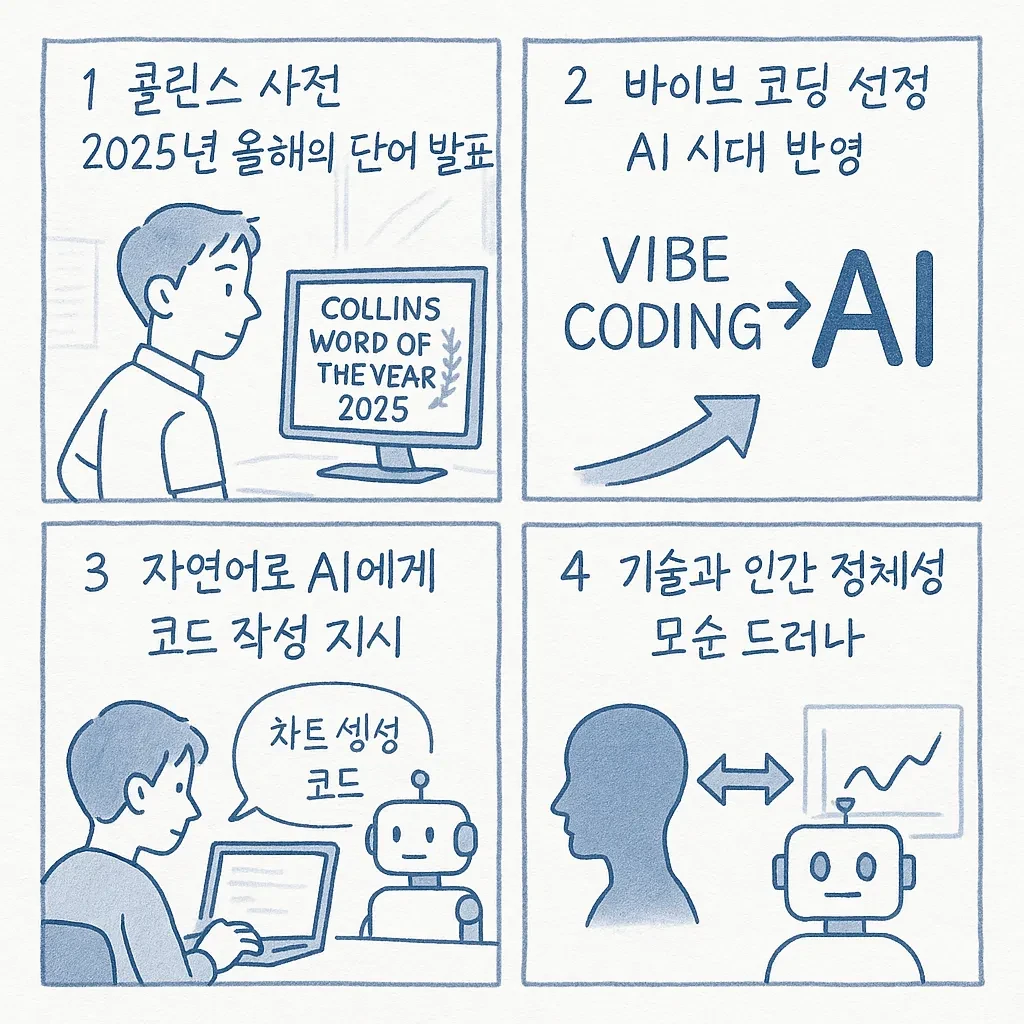 콜린스 사전이 선정한 2025년 올해의 단어는 '바이브 코딩'입니다. AI 선구자 안드레이 카파시가 만든 이 용어는 자연어로 AI에게 지시해 코드를 작성하는 방식을 뜻하죠. 복잡한 문법 대신 그냥 원하는 걸 말하면 되는데요. 올해의 단어 후보들은 기술 중심 세계로의 전환을 보여줍니다. 특히 '아우라 파밍'은 노력하지 않는 듯 보이면서도 실제론 공들여 만든 매력적인 이미지를 뜻하죠. '태스크마스킹'은 의미 없는 회의를 잡거나 관련 없는 문서를 열심히 타이핑하며 일하는 척하는 행위라고. '브로리가키'는 정치에 막대한 영향력을 행사하는 테크 억만장자들을 가리킵니다. 한편 '헨리'는 고소득자지만 아직 부자는 아닌 사람들이죠. '마이크로 은퇴'나 '쿨케이션' 같은 신조어도 등장했습니다. 이런 단어들은 AI를 받아들이면서도 저항하고, 진정성을 추구하면서도 이미지를 가꾸는 현대인의 모순을 보여줍니다. 2025년은 AI 시대 인간의 복잡한 정체성이 언어에 고스란히 담긴 해라고 하네요. 원문 보러가기