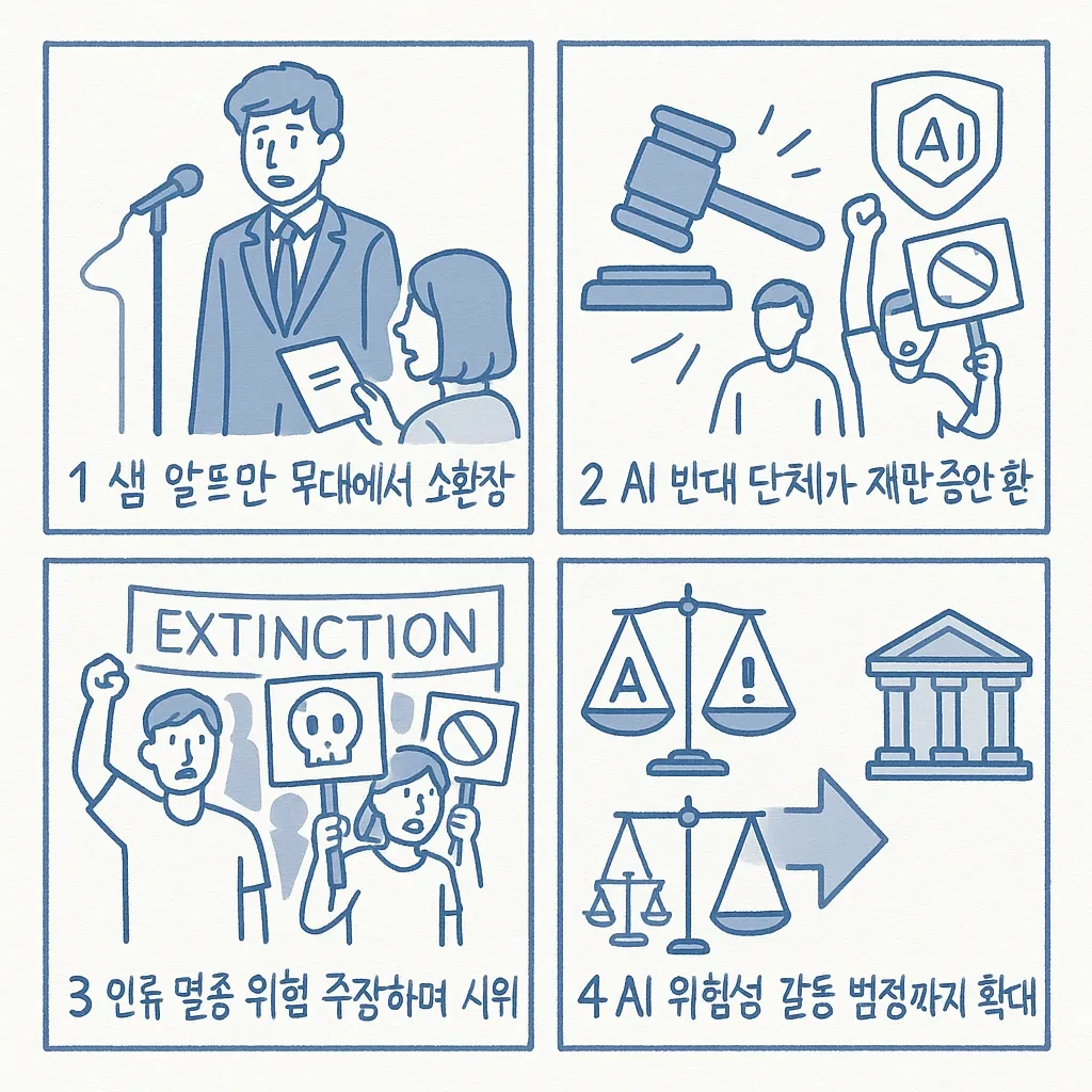 샘 알트만, 무대 위에서 법원 소환장 받아... AI 반대 시위대 재판 증인 출석 요구