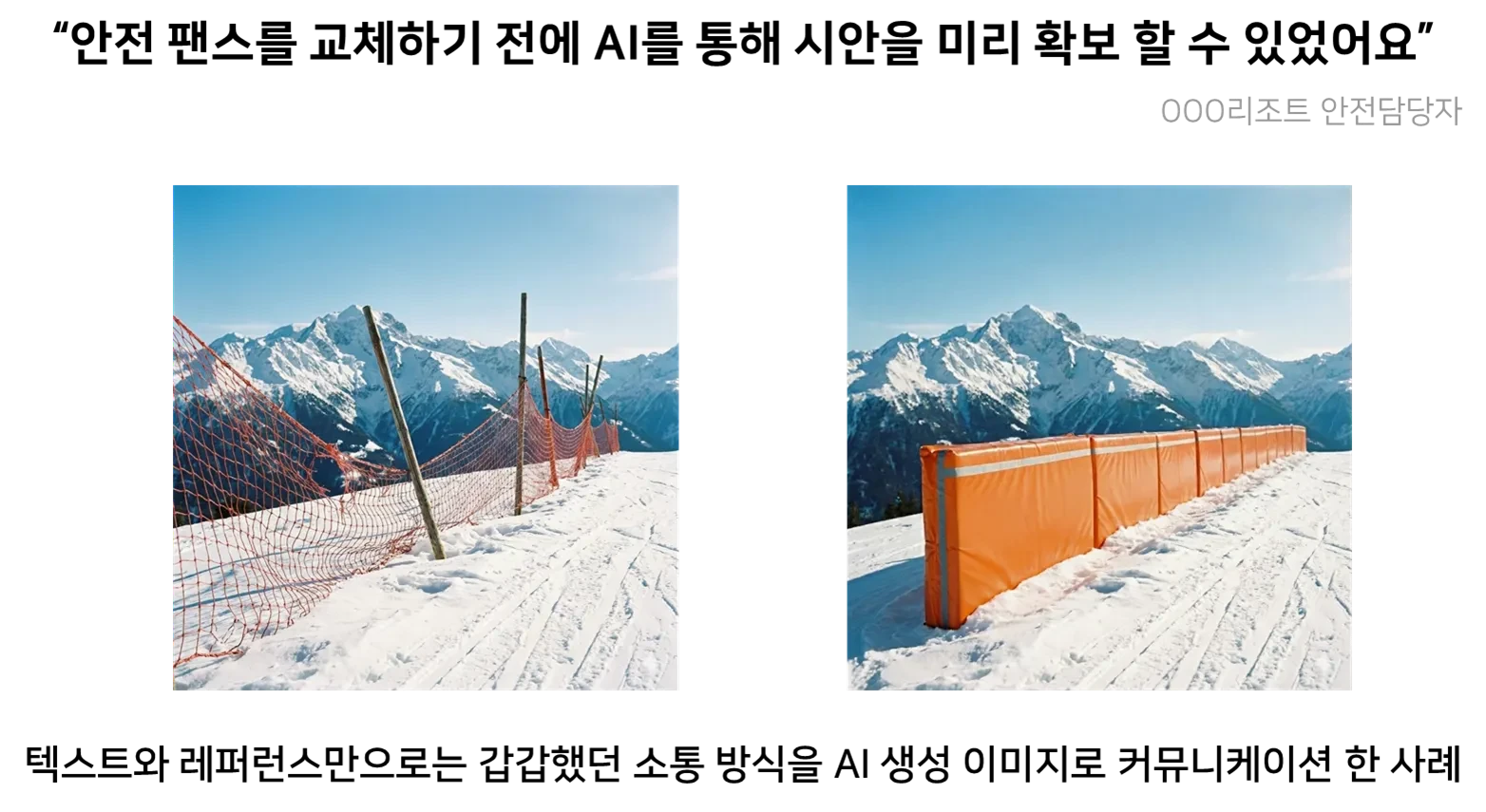 실제로 한 리조트의 안전담당자는 디자인을 전혀 하지 못하지만, 이미지 AI를 활용해 현장의 안전 설계를 팀과 훨씬 원활하게 소통하고 있다.